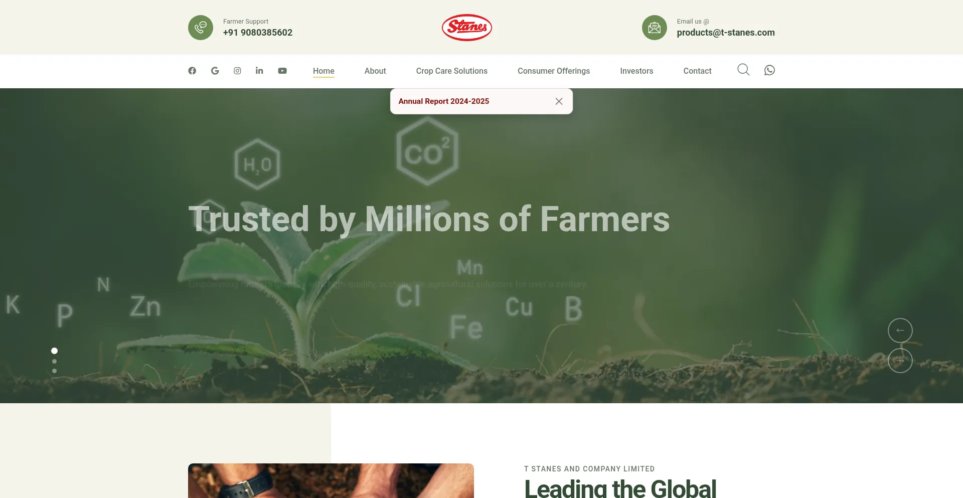 T. Stanes and Company Limited is a member of the Amalgamations Group, celebrated for its pioneering role in agriculture, fertilizers, bio-products, and its 150 years of innovati...