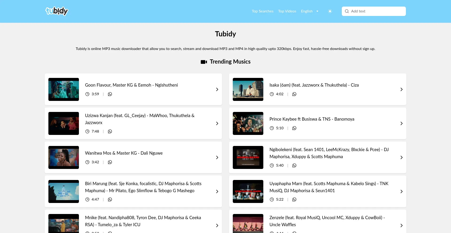 Tubidy is popular online platforms that allows users to search, stream, and download high-quality MP3 music up to 320kbps and MP4 Videos for free. No registration required.