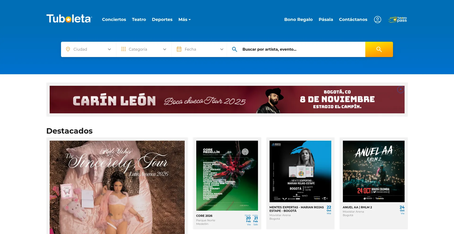 Tuboleta | Compra y vende boletas para conciertos, deportes, teatro y más.