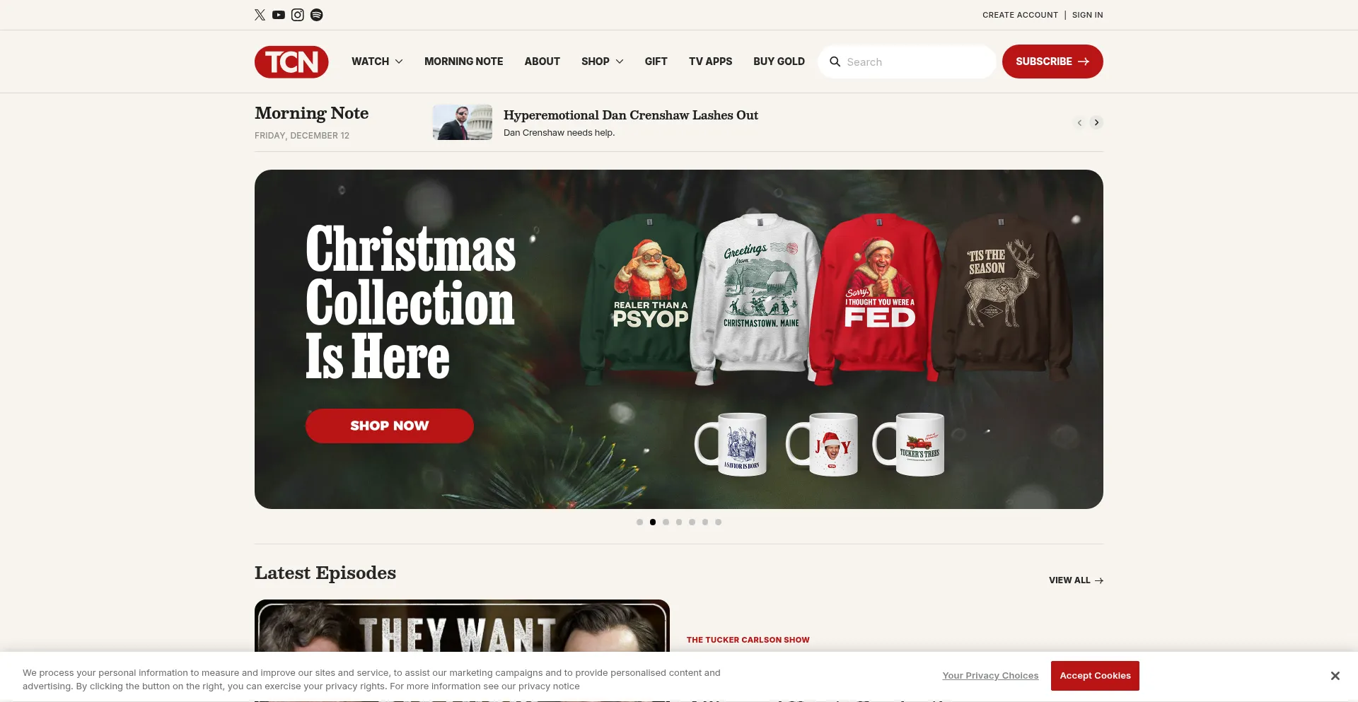 The website implements cookie consent mechanisms in compliance with privacy regulations such as GDPR or CCPA. This demonstrates that tuckercarlson.com adheres to data protection standards and provides users with control over personal data collection practices.