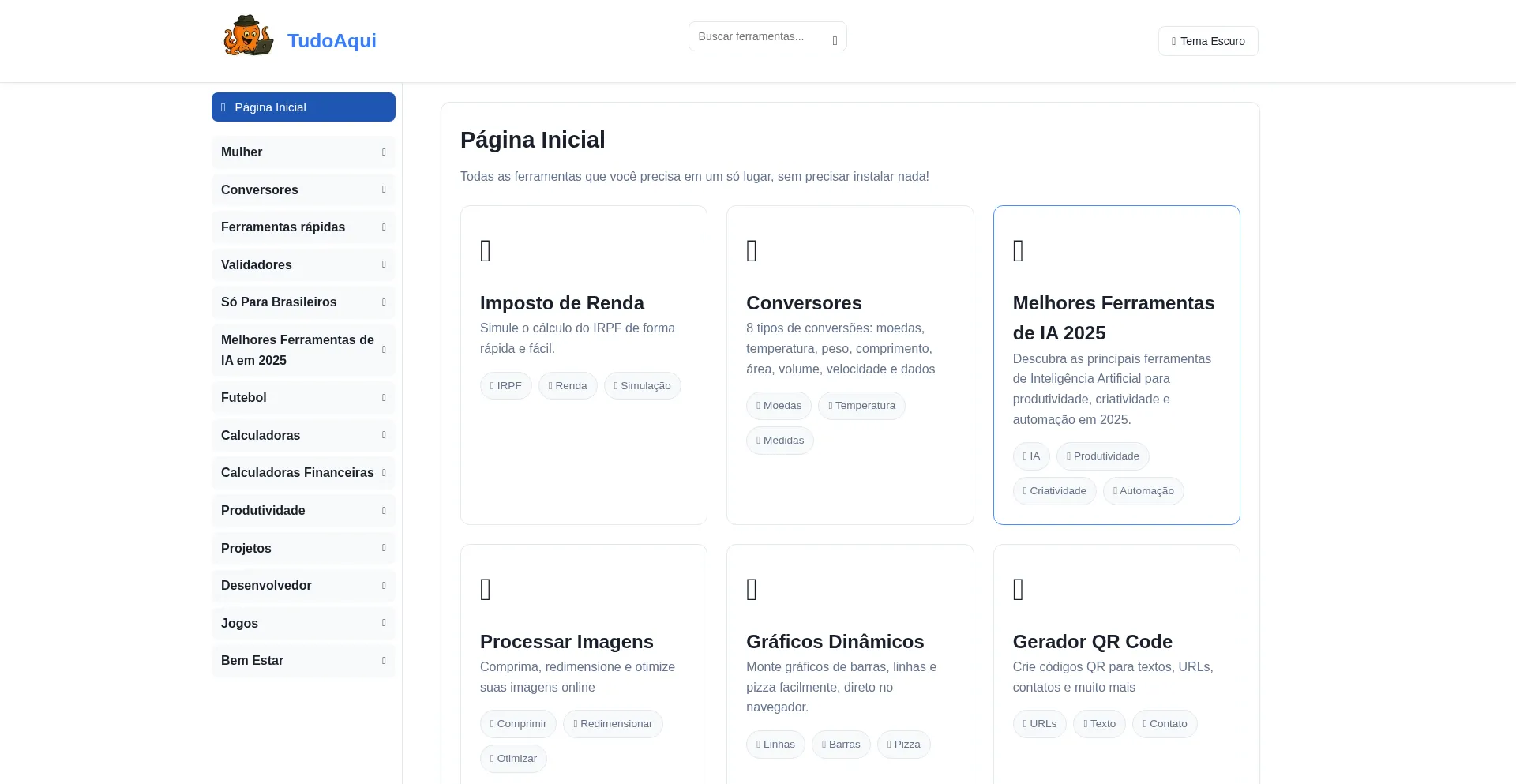 TudoAqui - 50+ Ferramentas Online Gratuitas 2025 | Calculadoras e Conversores