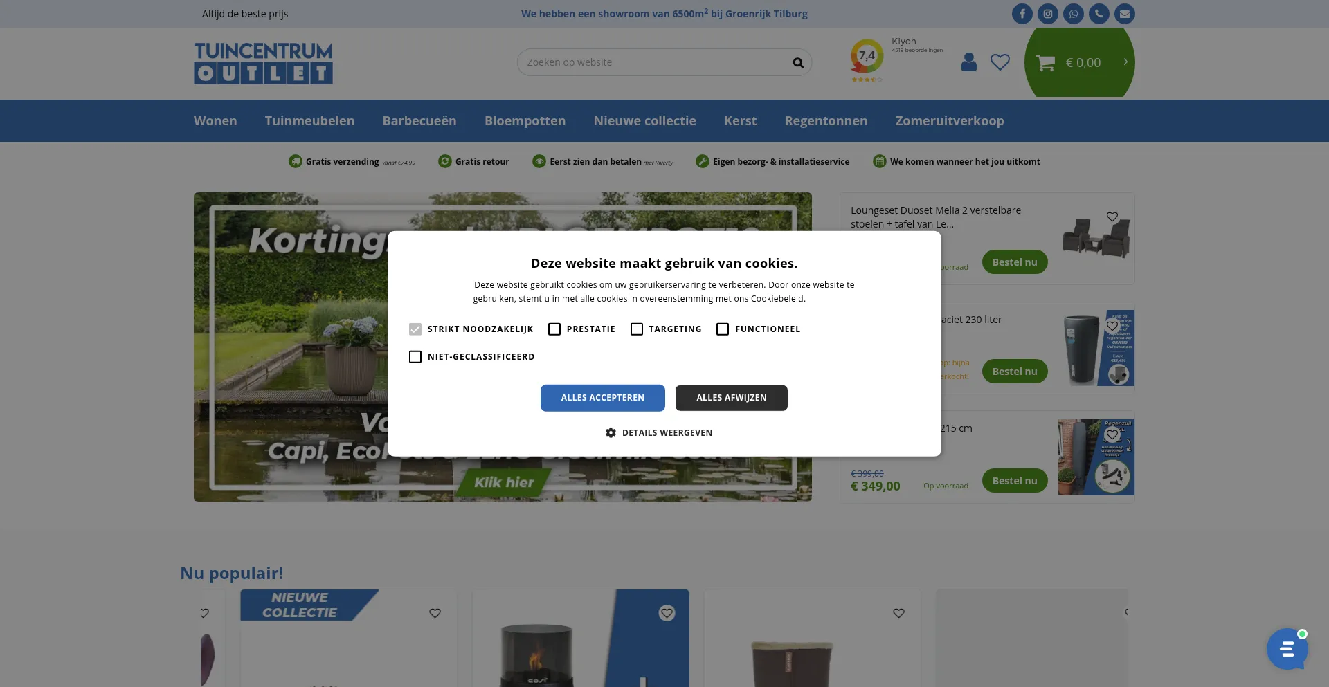 The website implements cookie consent mechanisms in compliance with privacy regulations such as GDPR or CCPA. This demonstrates that tuincentrumoutlet.com adheres to data protection standards and provides users with control over personal data collection practices.