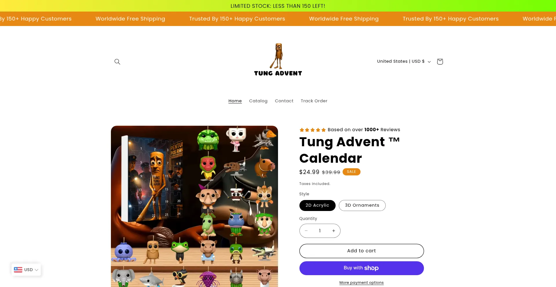 Our analyzer determines that website tungadvent.com is using Shopify CMS. Shopify is a popular e-commerce platform, powering around 4.4% of websites globally.