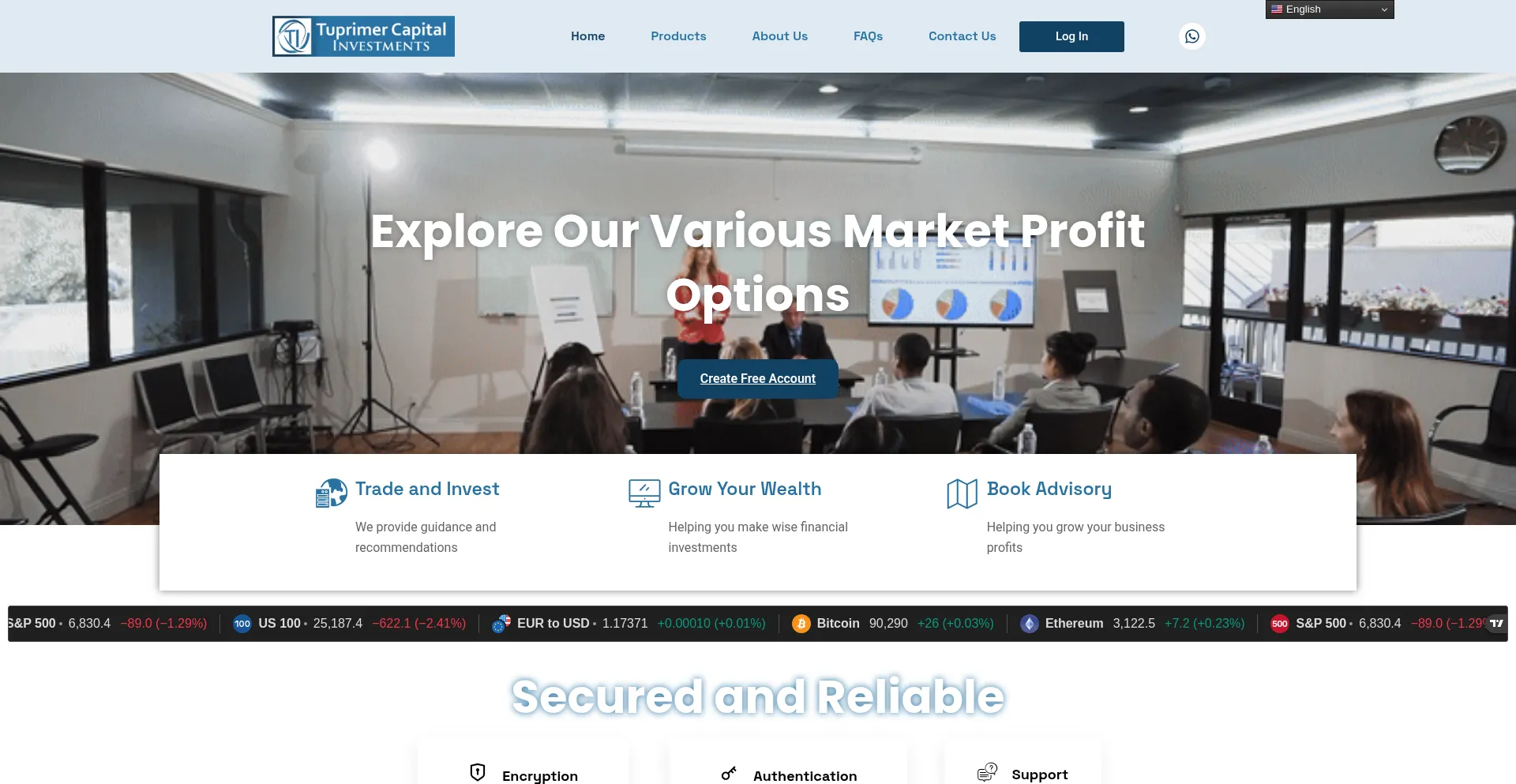 The tuprimercapital.com website provides financial services including investment management, wealth advisory, or financial planning solutions. Services may encompass portfolio management, investment opportunities, financial consulting, or asset growth strategies for individual and institutional clients.