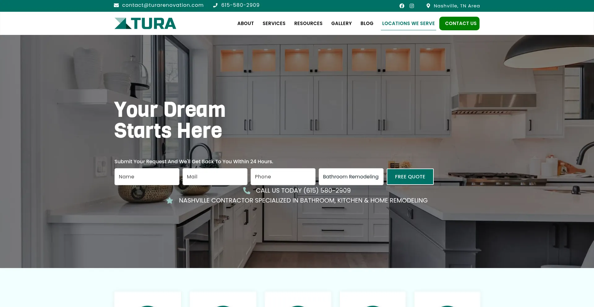 Tura Renovation Offers The Best Home Remodeling Services in Nashville Tn, Kitchen & Bath, full home remodels, House Improvements from $5k. 20 Years. Free Bid!