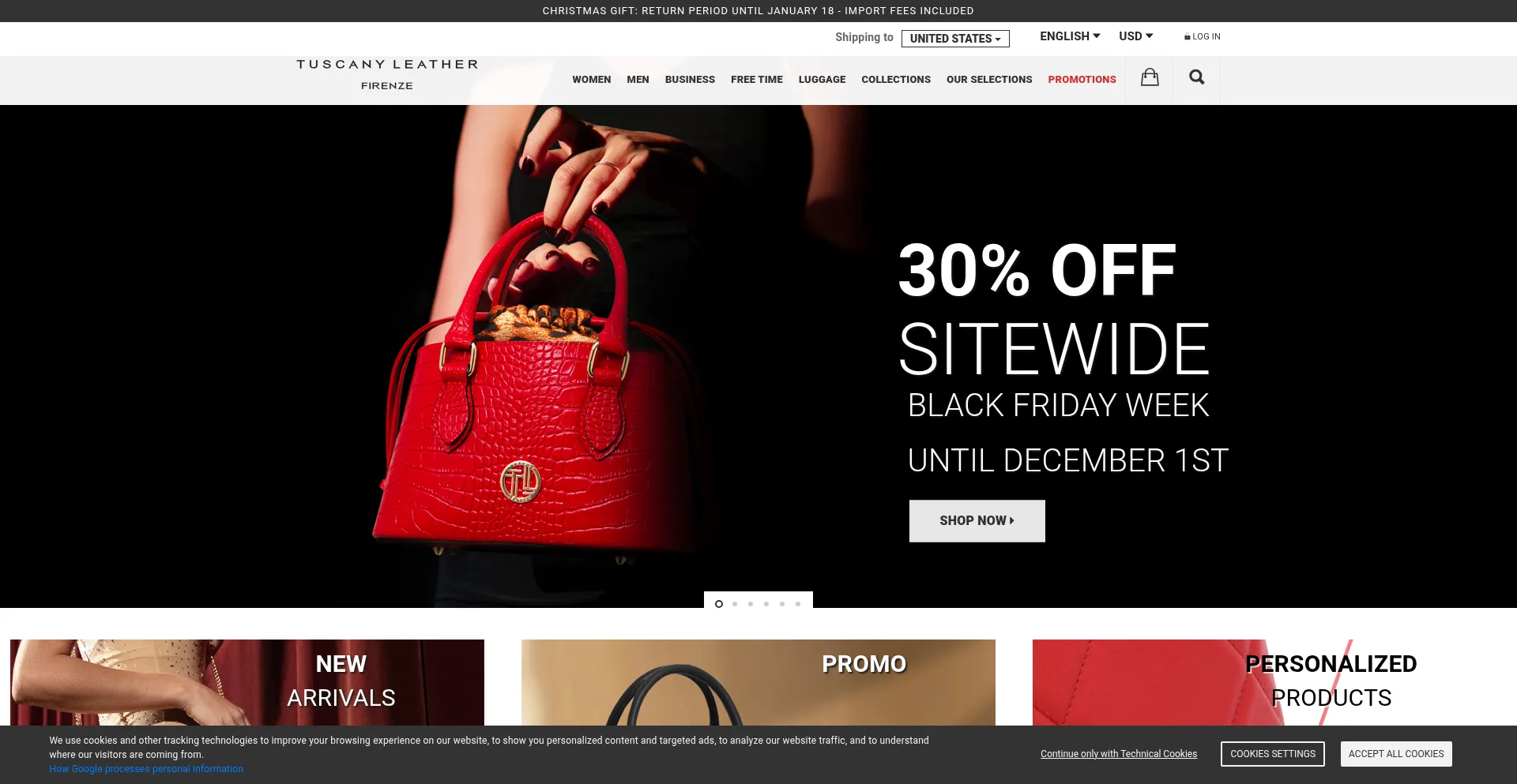 The website implements cookie consent mechanisms in compliance with privacy regulations such as GDPR or CCPA. This demonstrates that tuscanyleather.it adheres to data protection standards and provides users with control over personal data collection practices.