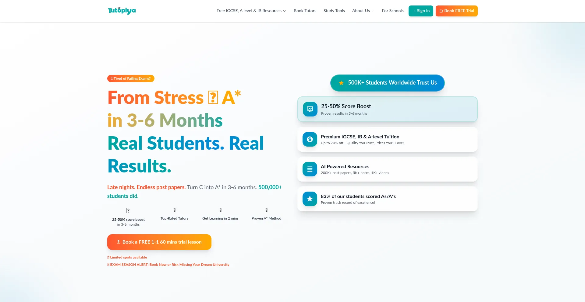 Ace Your IGCSE, A-Level & IB Exams | Expert Online Tutoring - Tutopiya