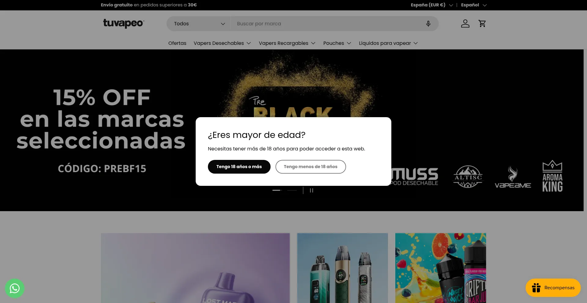Tienda online de vapers en España: desechables, recargables, longfills, accesorios y pouches. Recibe tu pedido en solo 24/48h.