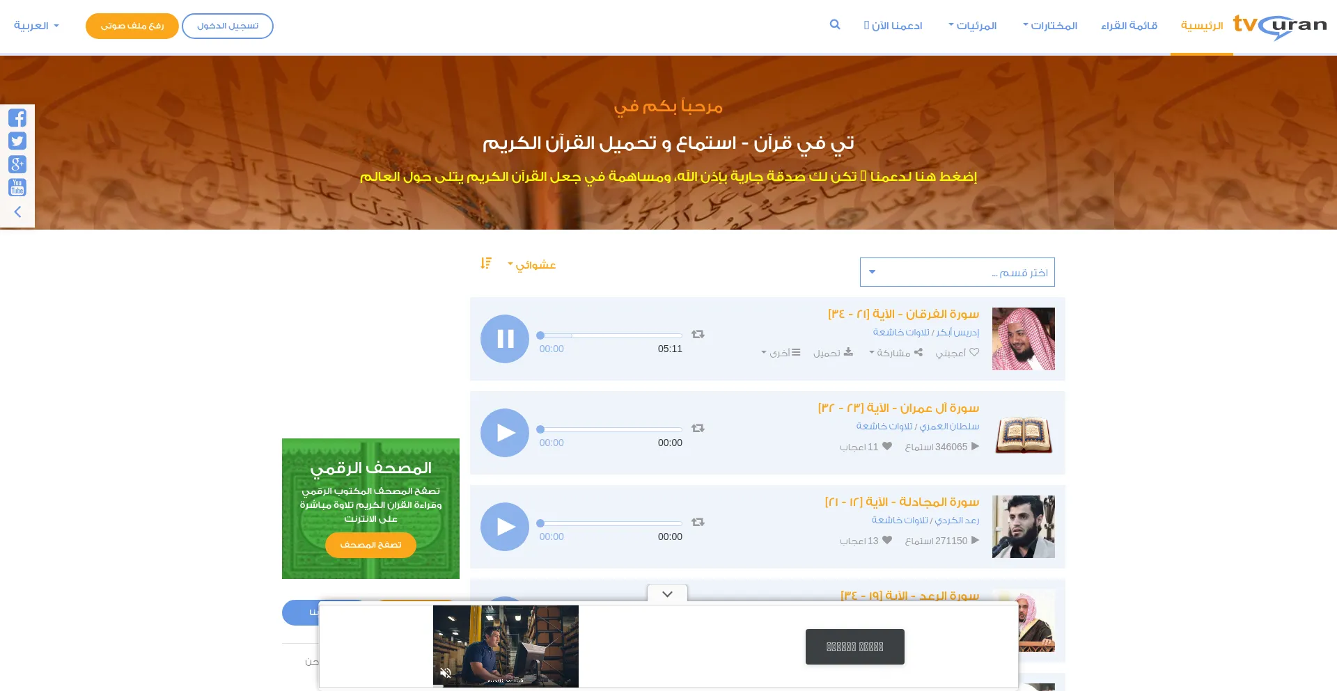 تلاوات القرآن الكريم استماع و تحميل مباشر من موقع تي في قرآن، تحميل المصحف الكامل برابط واحد و تل�...