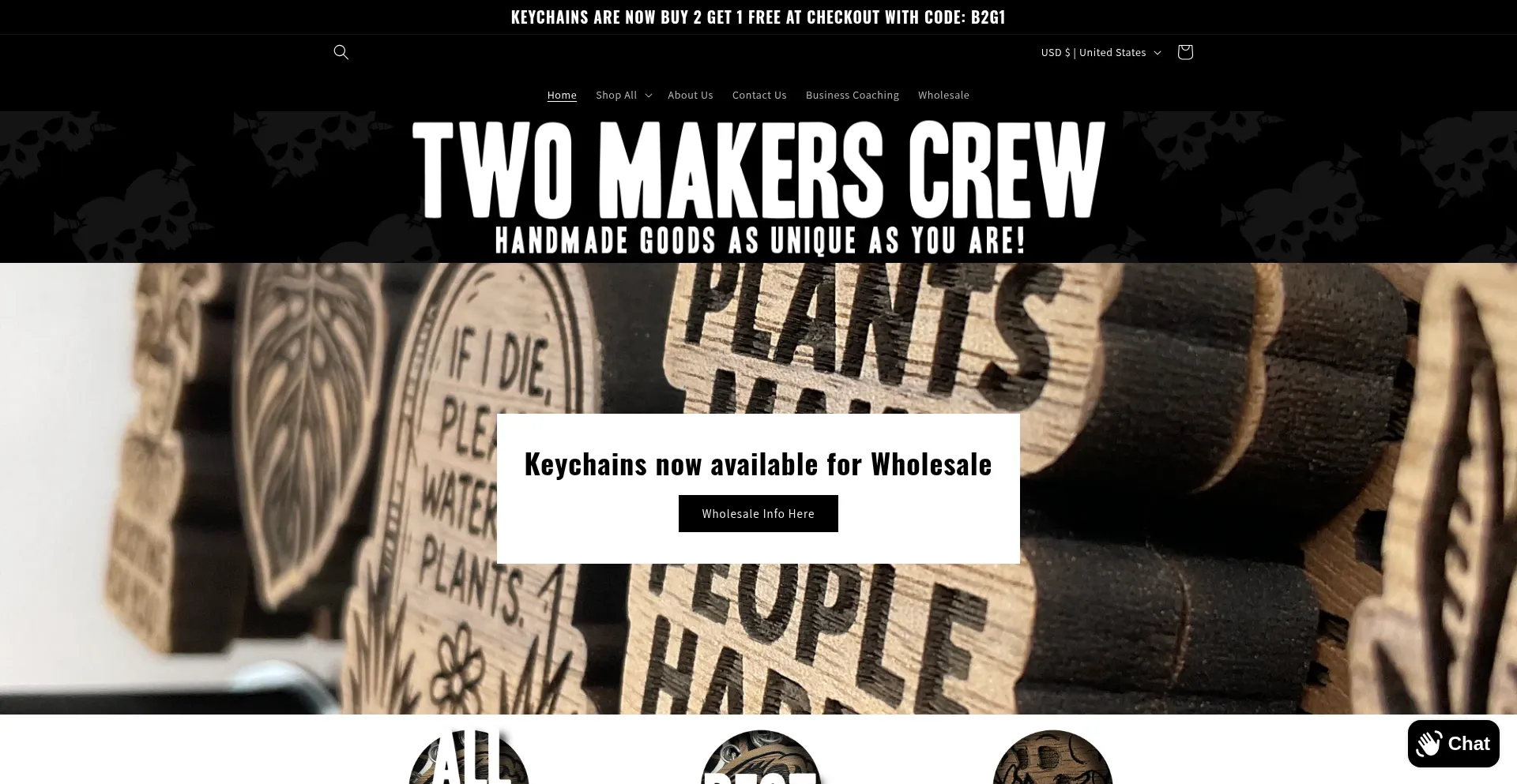 Handcrafted wood home goods and more. Now specializing in solid walnut keychains that are as unique as you. Customization available and all made to order.