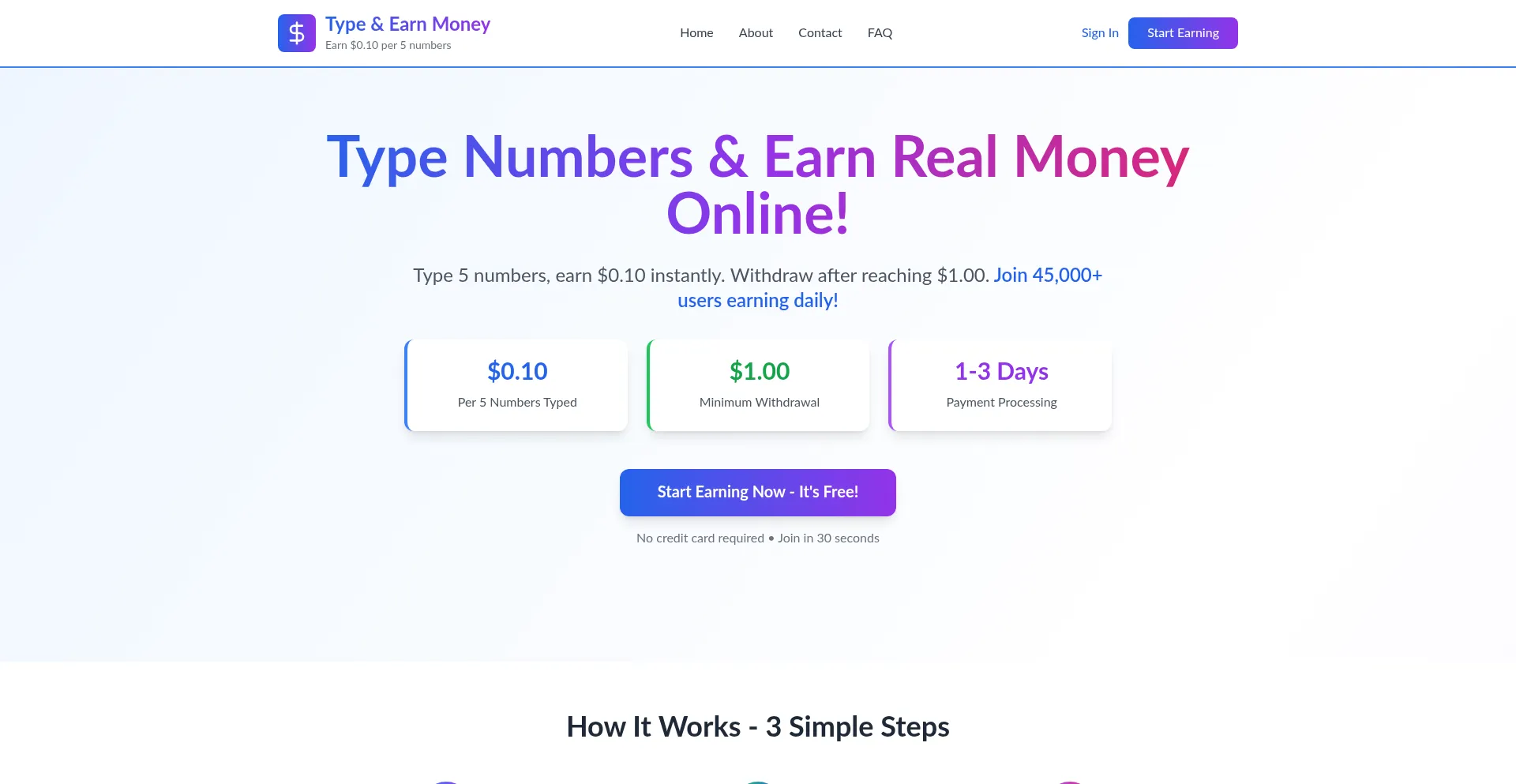 Type & Earn Money - Earn $0.10 Per 5 Numbers | Best Online Earning Website 2025