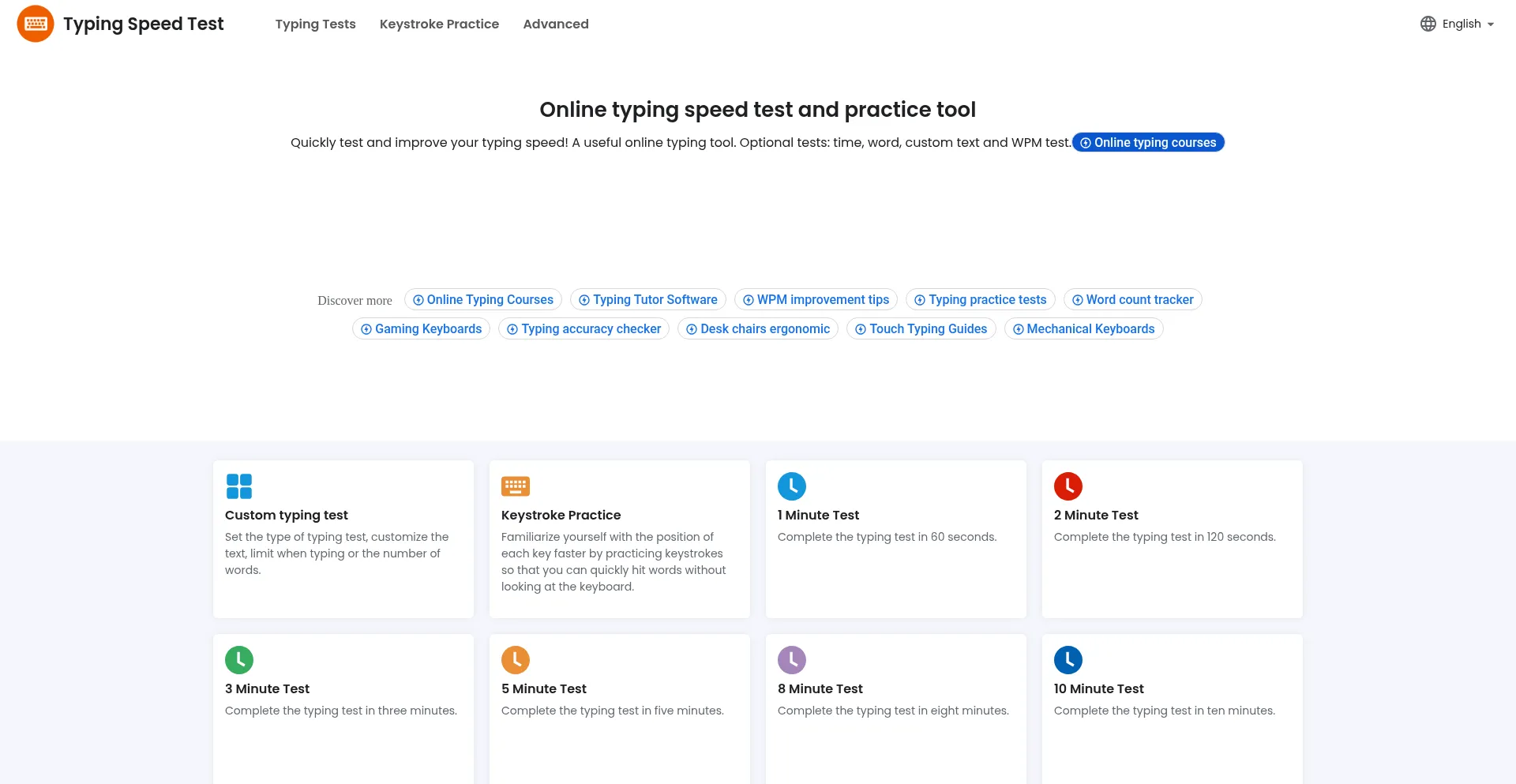 Quickly test and improve your typing speed! A useful online typing tool. Optional tests: time, word, custom text and WPM test.