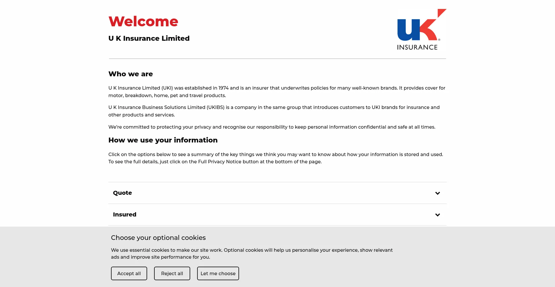 U K Insurance Limited (UKI) was established in 1974 and is an insurer that underwrites policies for many well-known brands.