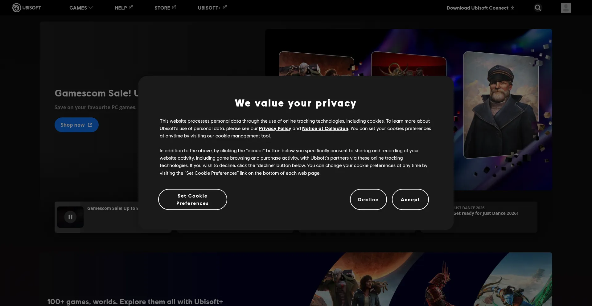 The website implements cookie consent mechanisms in compliance with privacy regulations such as GDPR or CCPA. This demonstrates that ubisoft.com adheres to data protection standards and provides users with control over personal data collection practices.