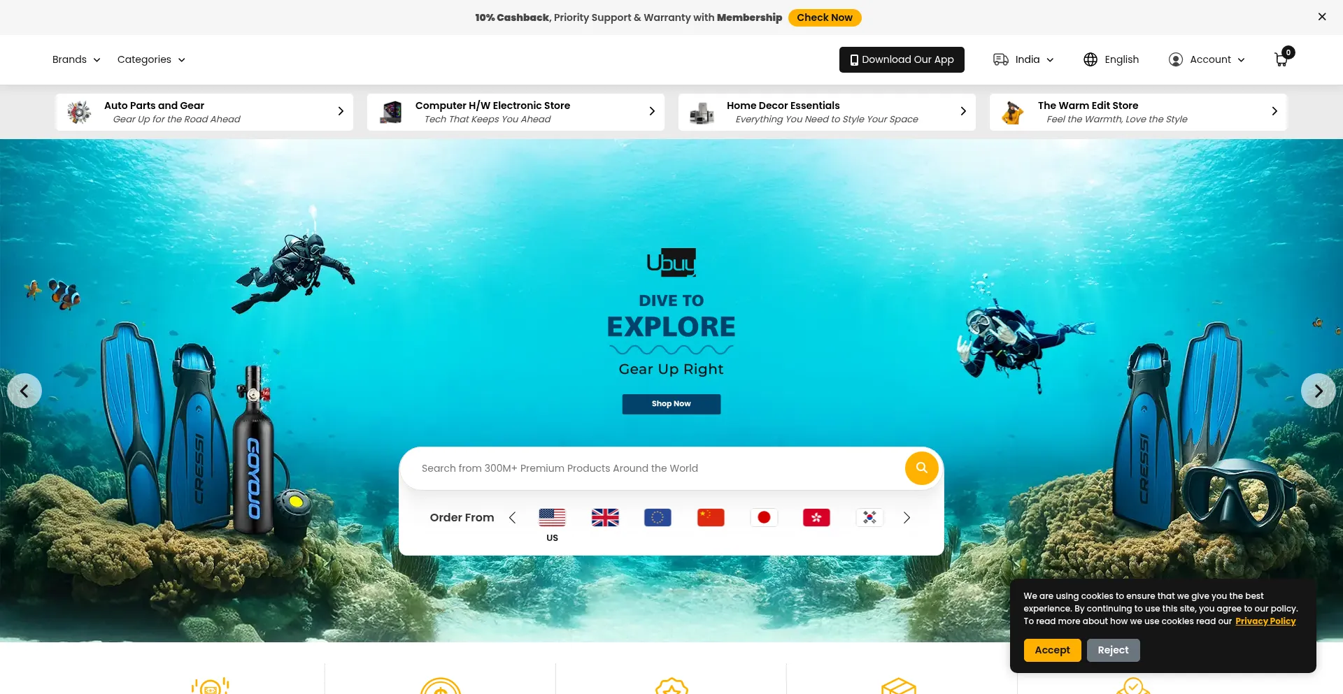 The website implements cookie consent mechanisms in compliance with privacy regulations such as GDPR or CCPA. This demonstrates that ubuy.co.in adheres to data protection standards and provides users with control over personal data collection practices.