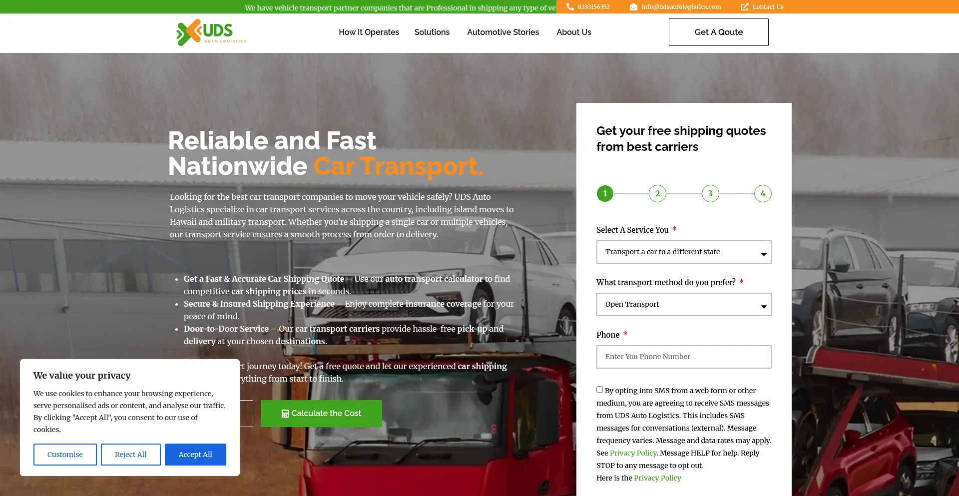 The website implements cookie consent mechanisms in compliance with privacy regulations such as GDPR or CCPA. This demonstrates that udsautologistics.com adheres to data protection standards and provides users with control over personal data collection practices.