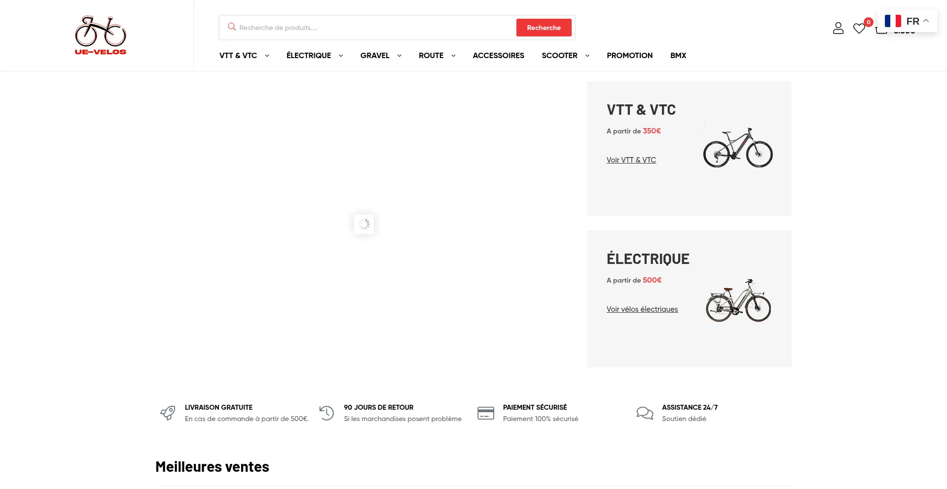 Analysis indicates that ue-velos.com operates as an e-commerce platform facilitating online transactions for goods or services. The website implements shopping cart functionality, payment processing systems, and product catalog features typical of commercial retail operations.