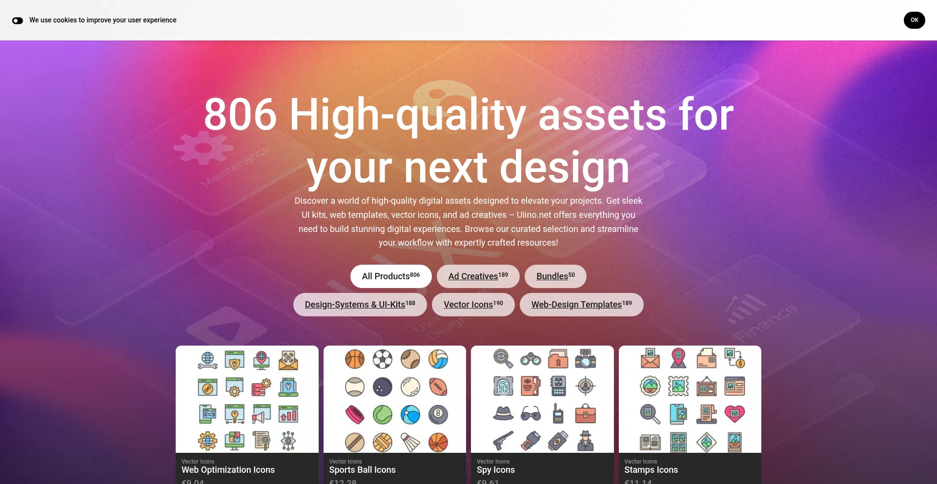 Discover a world of high-quality digital assets designed to elevate your projects. Get sleek UI kits, web templates, vector icons, and ad creatives – Uiino.net offers everythi...