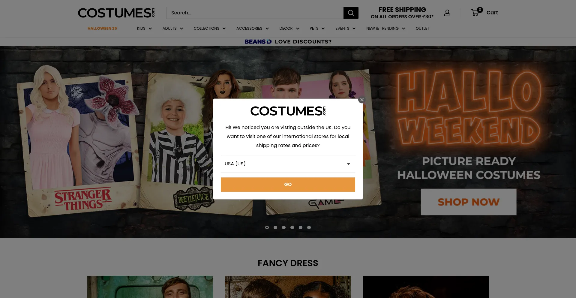 Analysis indicates that uk.costumes.com operates as an e-commerce platform facilitating online transactions for goods or services. The website implements shopping cart functionality, payment processing systems, and product catalog features typical of commercial retail operations.