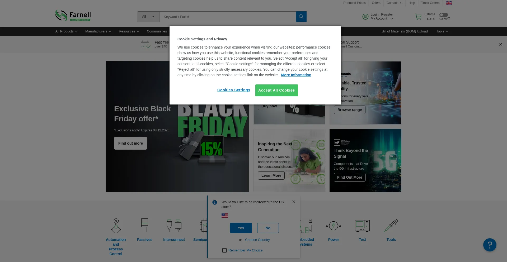 The website implements cookie consent mechanisms in compliance with privacy regulations such as GDPR or CCPA. This demonstrates that uk.farnell.com adheres to data protection standards and provides users with control over personal data collection practices.