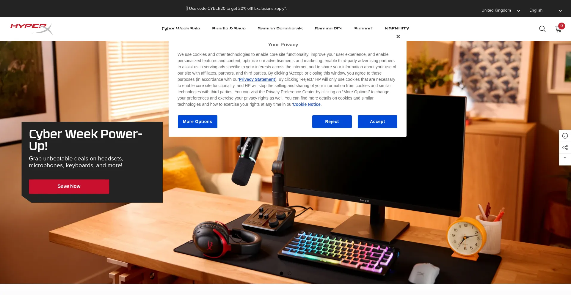 The website implements cookie consent mechanisms in compliance with privacy regulations such as GDPR or CCPA. This demonstrates that uk.hyperx.com adheres to data protection standards and provides users with control over personal data collection practices.