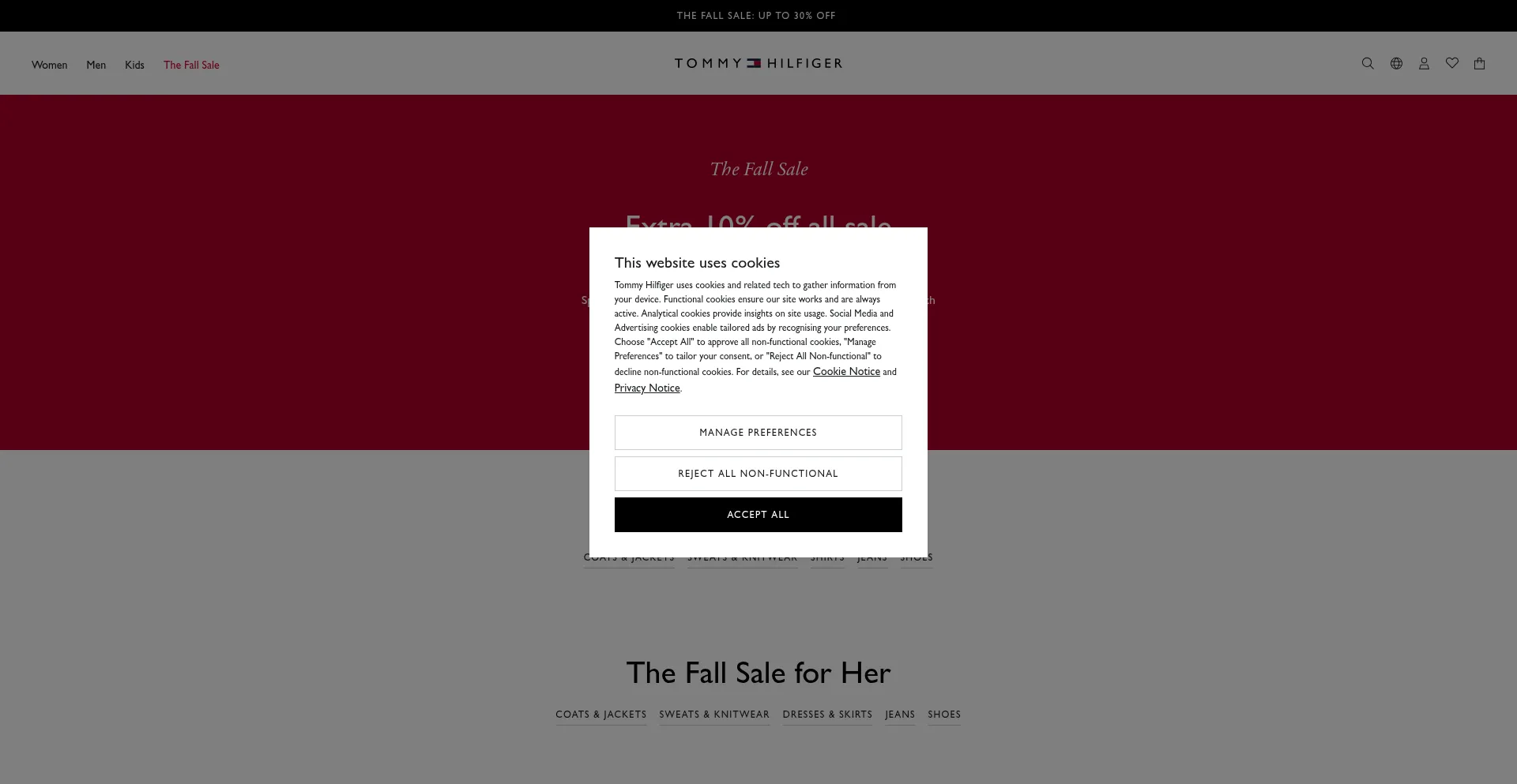 The website implements cookie consent mechanisms in compliance with privacy regulations such as GDPR or CCPA. This demonstrates that uk.tommy.com adheres to data protection standards and provides users with control over personal data collection practices.