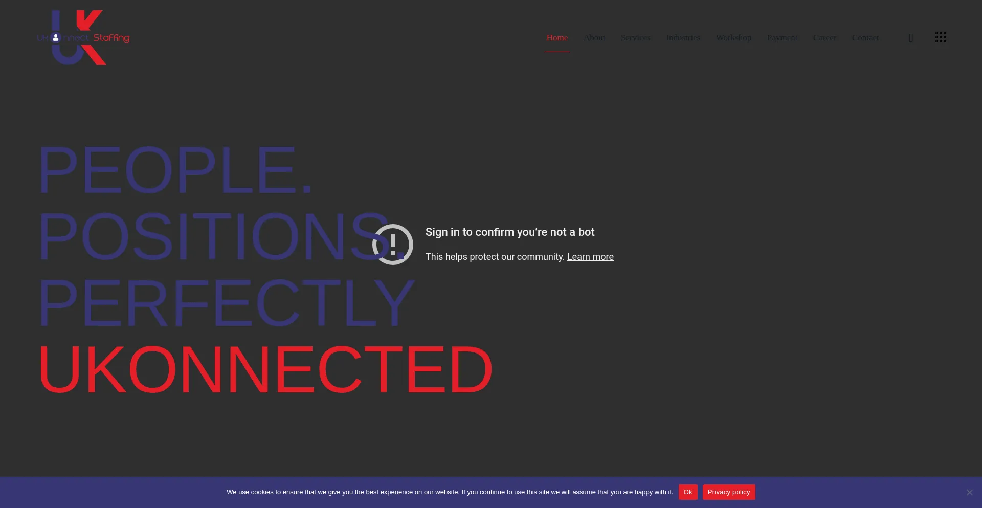 The website implements cookie consent mechanisms in compliance with privacy regulations such as GDPR or CCPA. This demonstrates that ukonnectstaffing.com adheres to data protection standards and provides users with control over personal data collection practices.