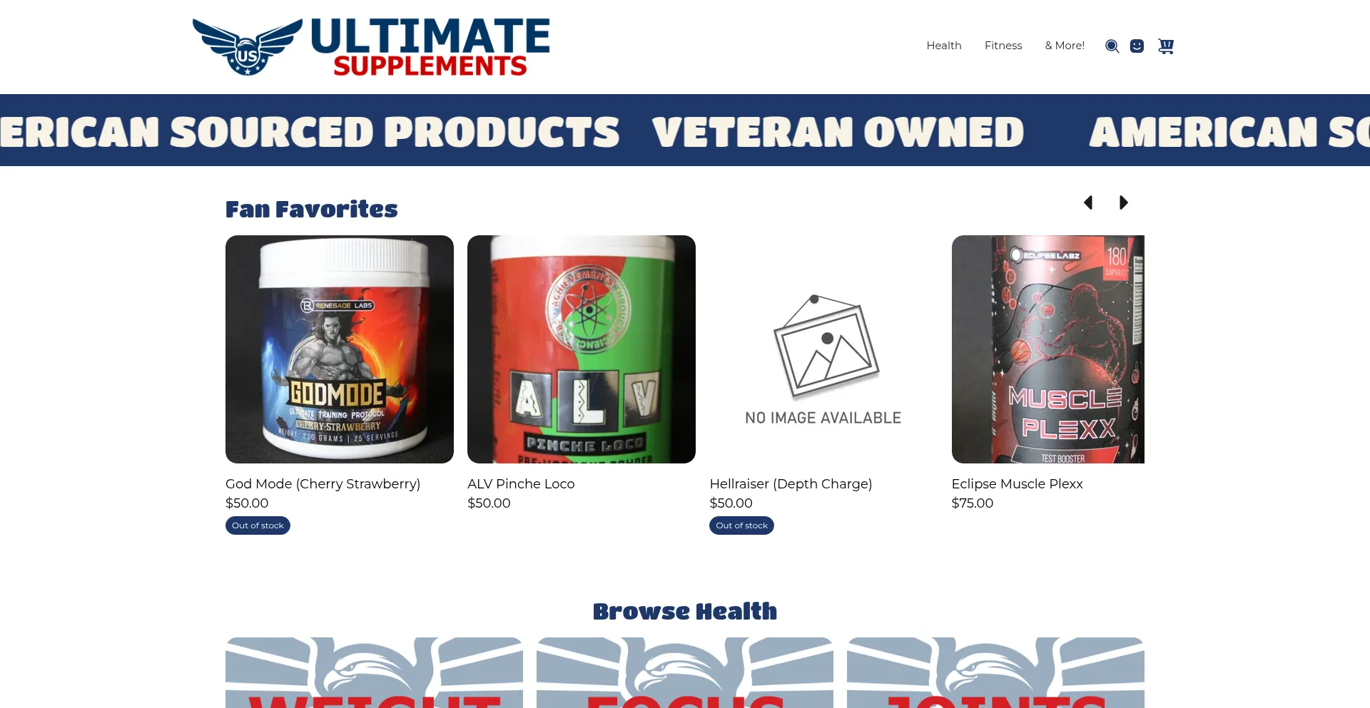 The website leverages popular product names and brands to attract traffic and generate user interest. These products may be offered through promotional campaigns or discount strategies designed to increase visitor engagement and conversion rates for ultimatesupplements.us.