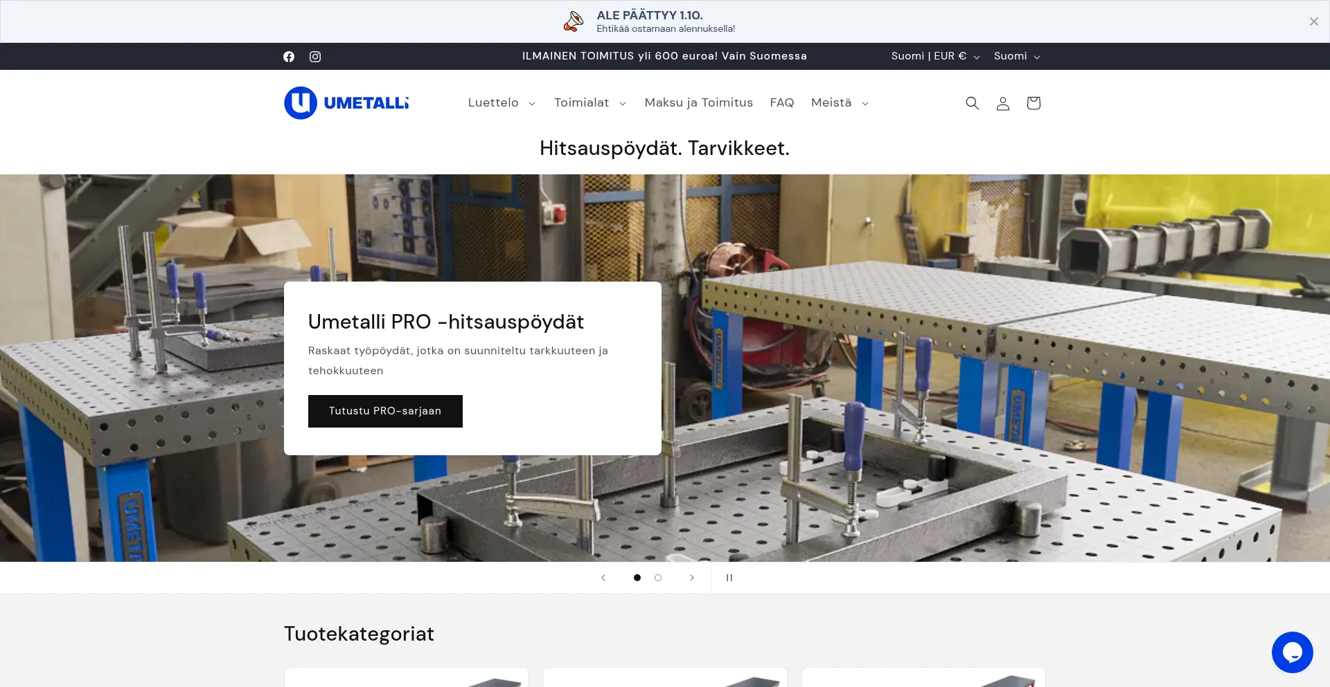 Analysis indicates that umetalli.fi operates as an e-commerce platform facilitating online transactions for goods or services. The website implements shopping cart functionality, payment processing systems, and product catalog features typical of commercial retail operations.