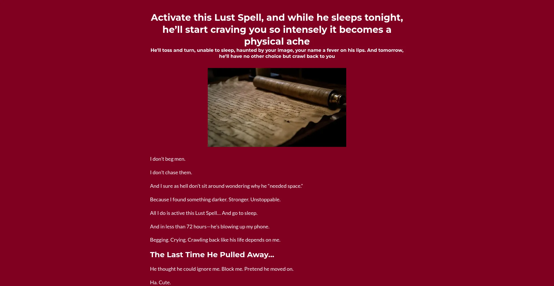 Activate this Lust Spell, and while he sleeps tonight, he’ll start craving you so intensely it becomes a physical ache
