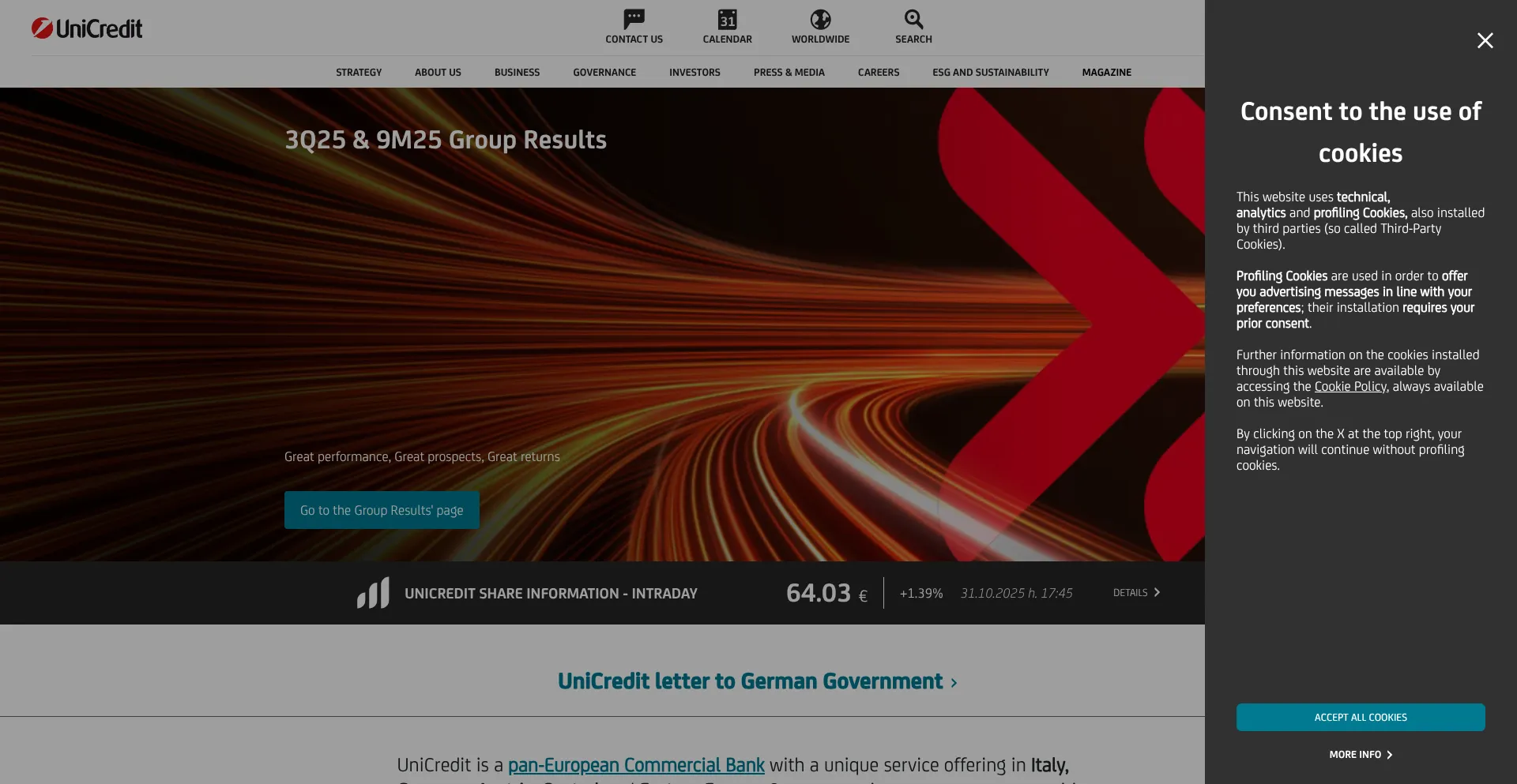 The website implements cookie consent mechanisms in compliance with privacy regulations such as GDPR or CCPA. This demonstrates that unicreditgroup.eu adheres to data protection standards and provides users with control over personal data collection practices.