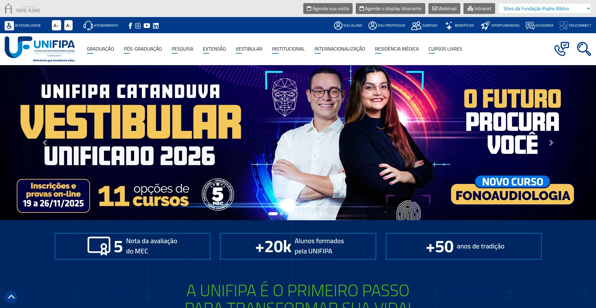 O Centro Universitário Padre Albino - UNIFIPA tem nove cursos de graduação e está instalado na cidade de Catanduva/SP.