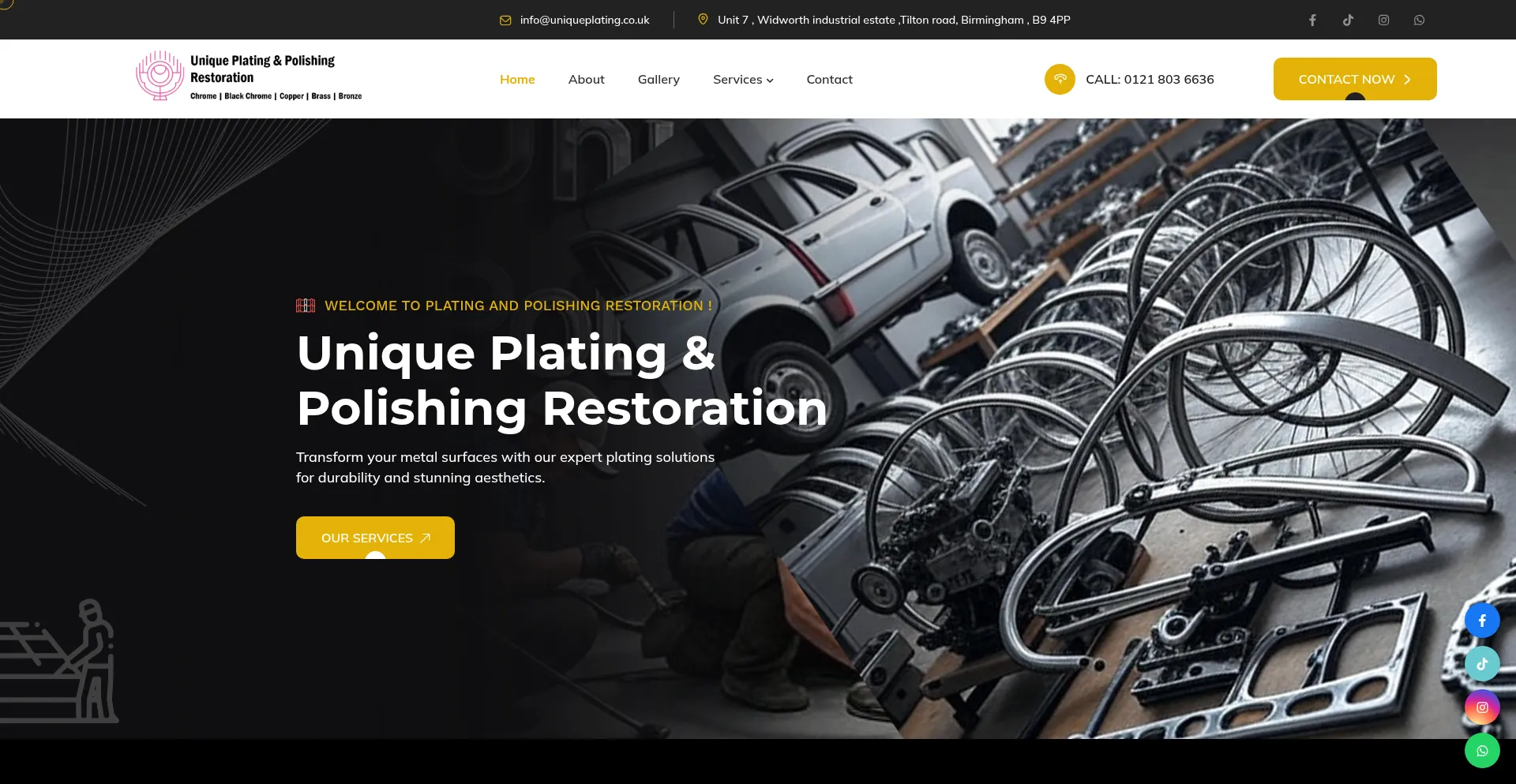 Analysis reveals that uniqueplating.co.uk displays social media icons or links that do not connect to legitimate social media profiles. This deceptive practice is commonly employed to create false legitimacy and represents a significant indicator of fraudulent intent requiring immediate caution.