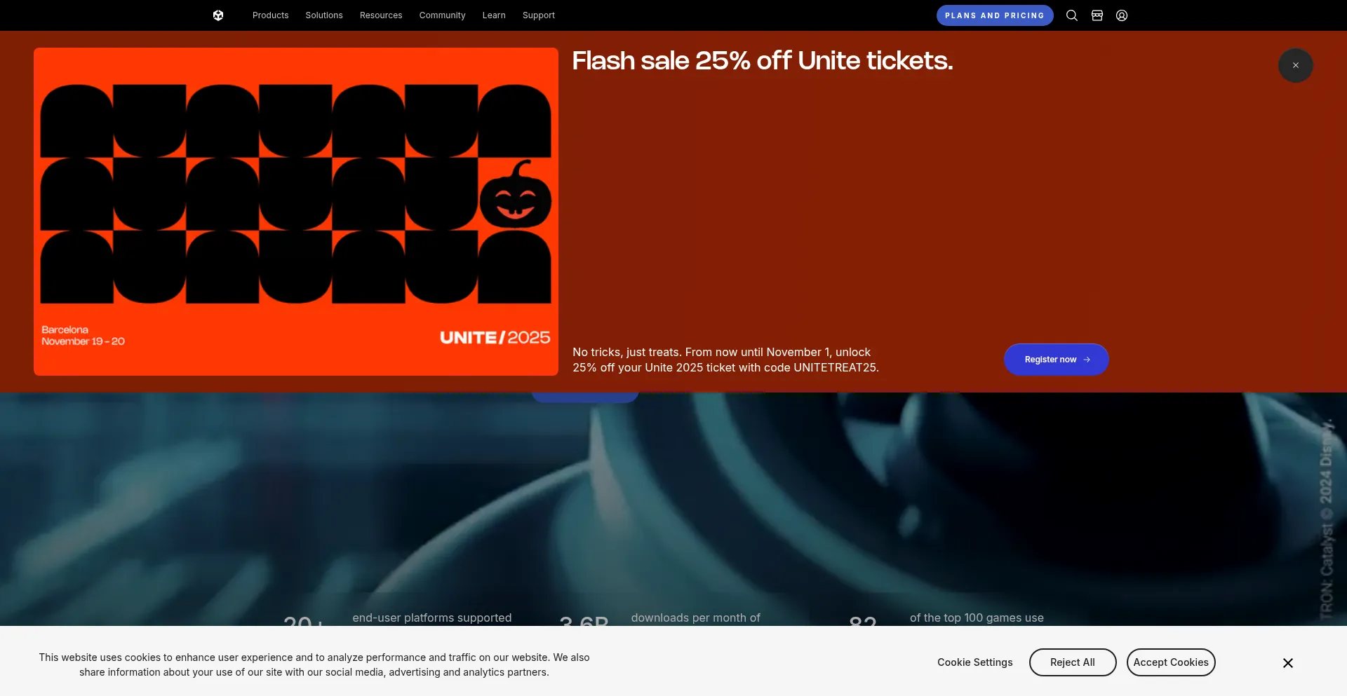 The website implements cookie consent mechanisms in compliance with privacy regulations such as GDPR or CCPA. This demonstrates that unity3d.com adheres to data protection standards and provides users with control over personal data collection practices.
