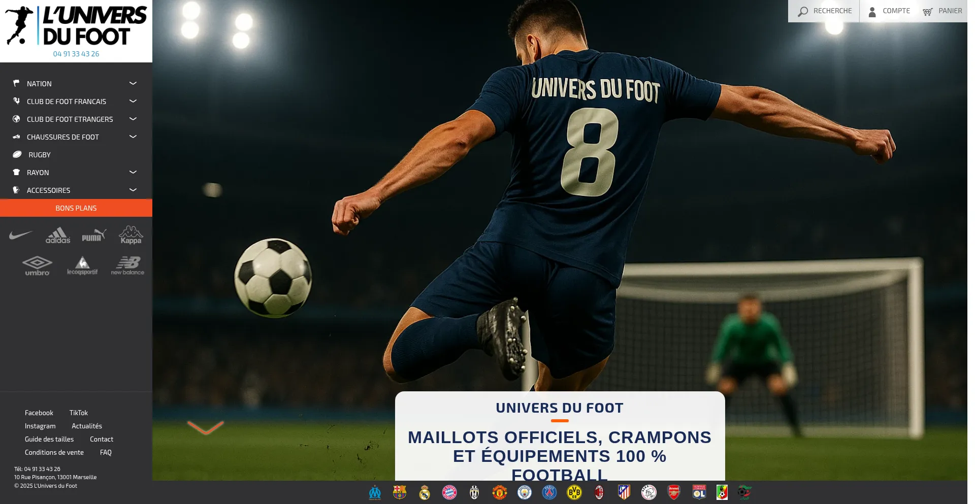 Retrouvez une grande sélection de maillots, chaussures, survêtements training et accessoires de football des plus grands clubs et aux meilleurs prix