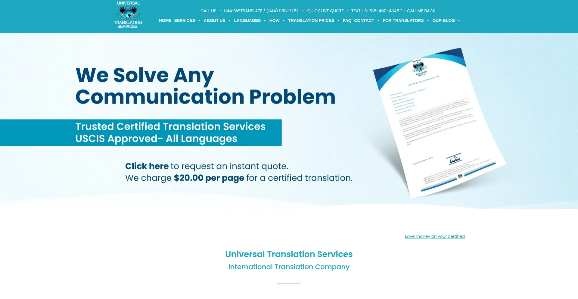 Universal Translation Services is a translation agency with offices in the US and Europe, that offers online translation services for all languages.