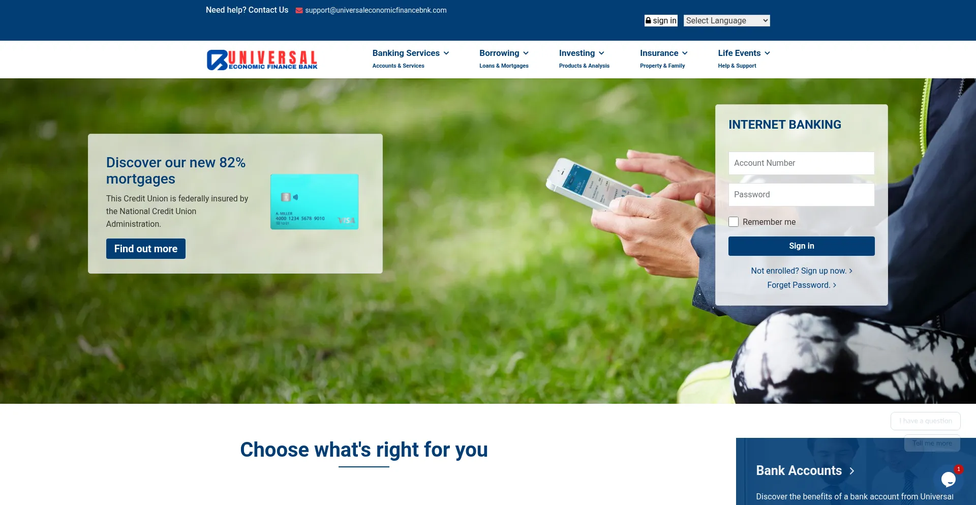 The universaleconomicfinancebnk.com website provides financial services including investment management, wealth advisory, or financial planning solutions. Services may encompass portfolio management, investment opportunities, financial consulting, or asset growth strategies for individual and institutional clients.