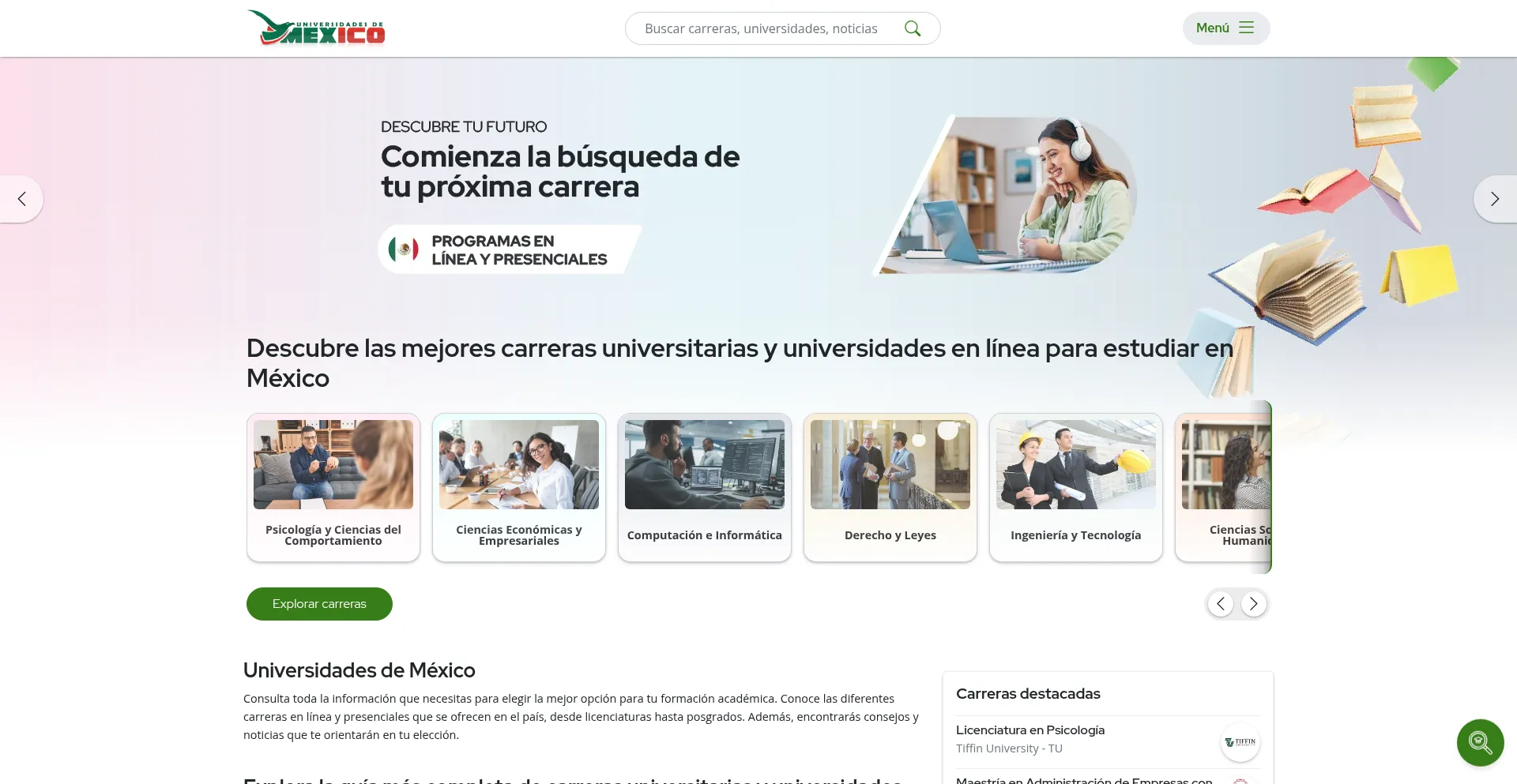 Encuentra la guía completa de carreras universitarias, carreras en línea en universidades online para estudiar en México.