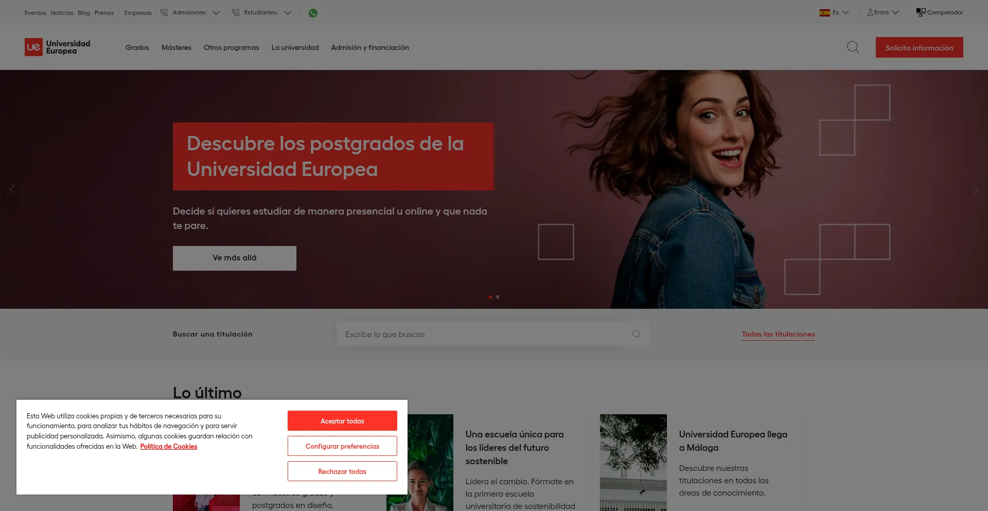 The website implements cookie consent mechanisms in compliance with privacy regulations such as GDPR or CCPA. This demonstrates that universidadeuropea.com adheres to data protection standards and provides users with control over personal data collection practices.