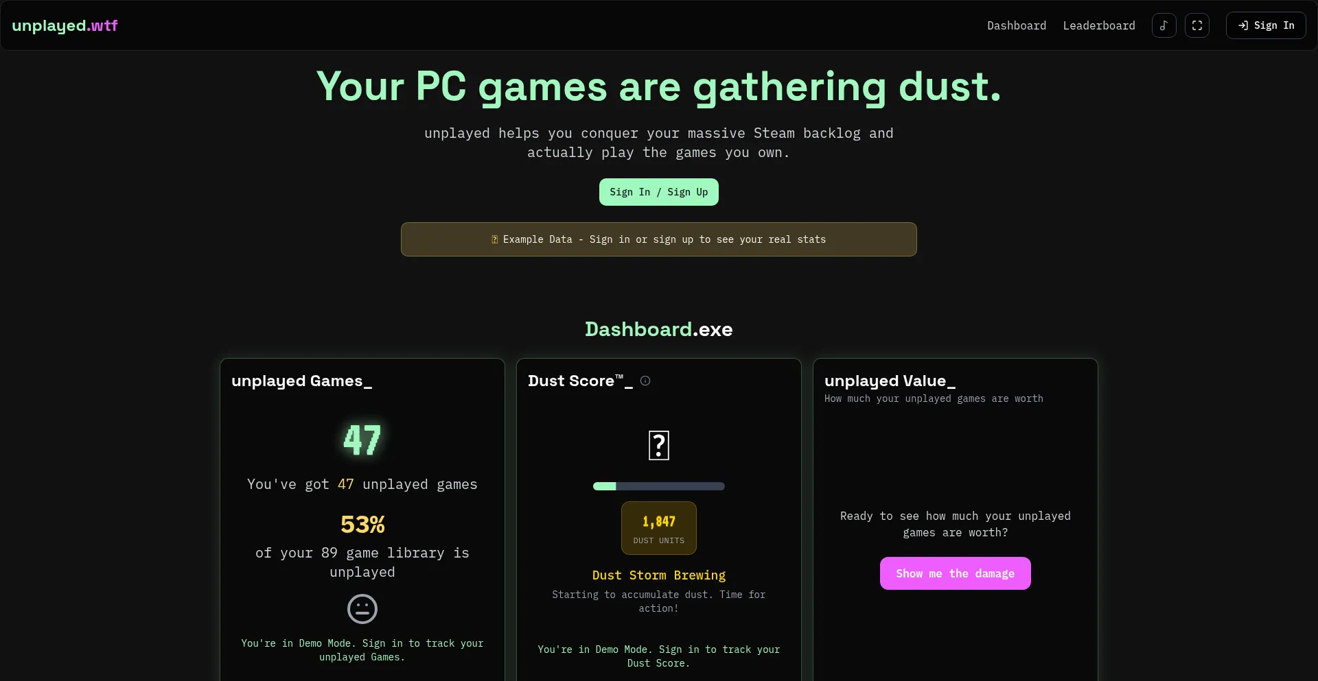 unplayed helps PC gamers discover games in their Steam library they've never played.