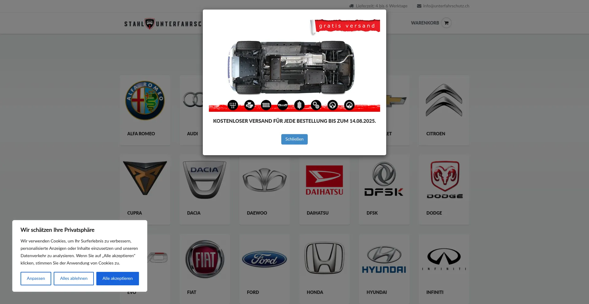 Analysis indicates that unterfahrschutz.ch operates as an e-commerce platform facilitating online transactions for goods or services. The website implements shopping cart functionality, payment processing systems, and product catalog features typical of commercial retail operations.