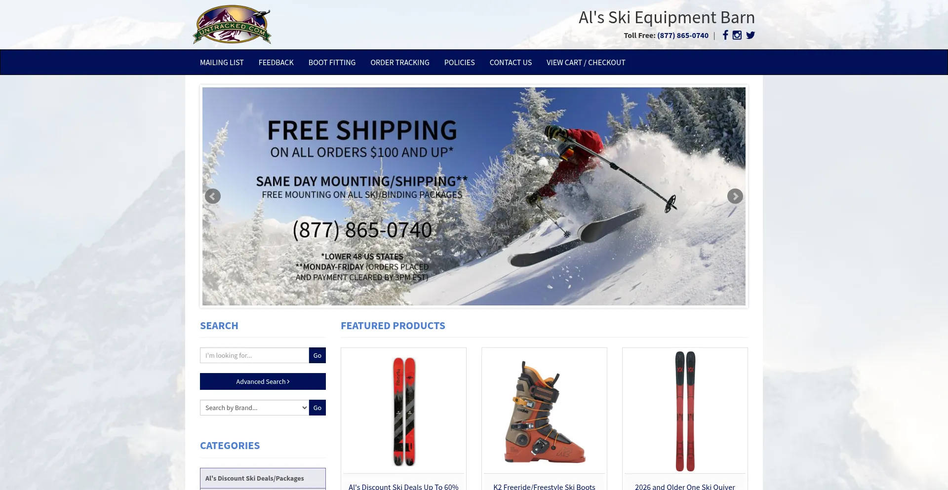 Al's Ski Equipment Barn offers name brand ski equipment at very low prices. Free Same Day Shipping. Skis, Snowboards, Bindings, Poles, Bags, and More!