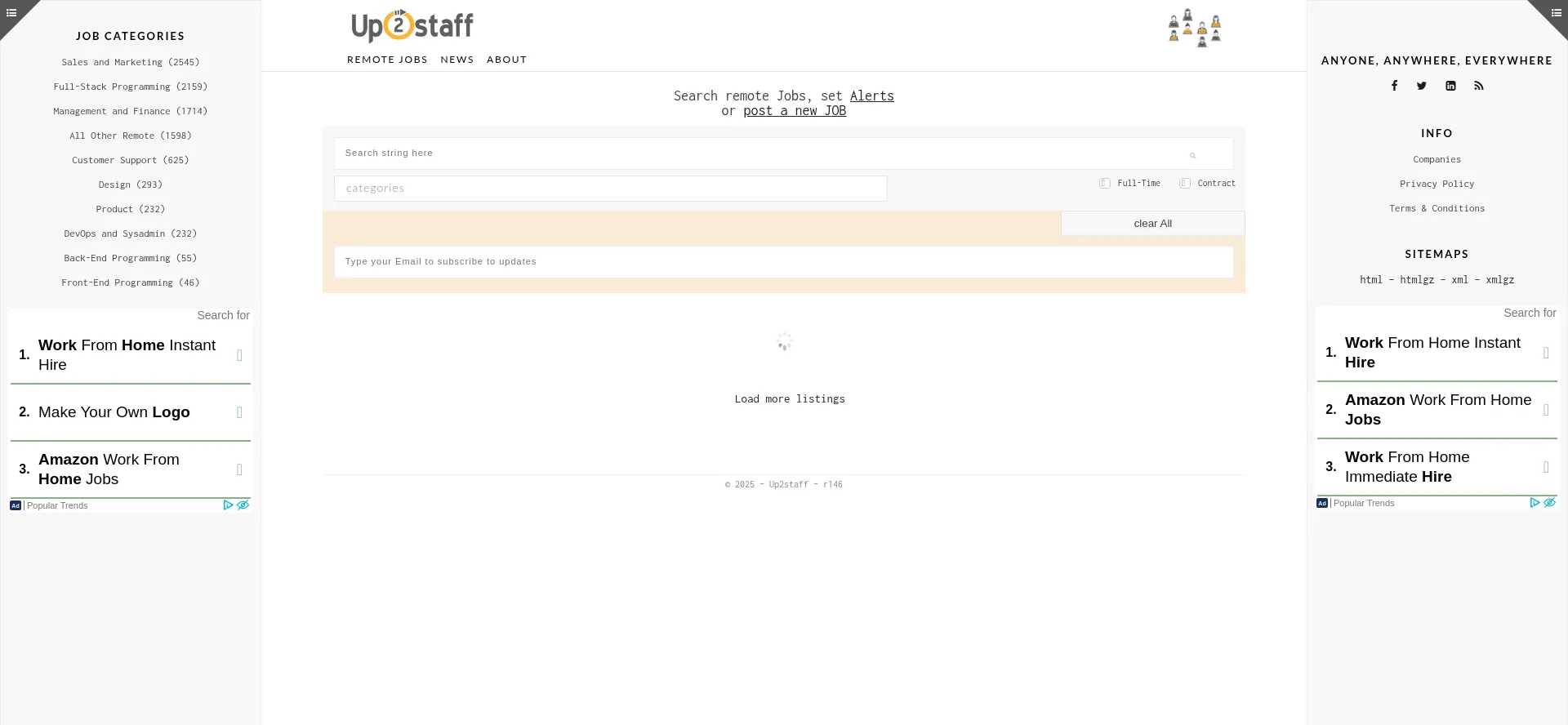 Up2staff is a simple board for remote jobs. We display such jobs that meet our definition of being truly remote. There are new postings every day from many different areas.