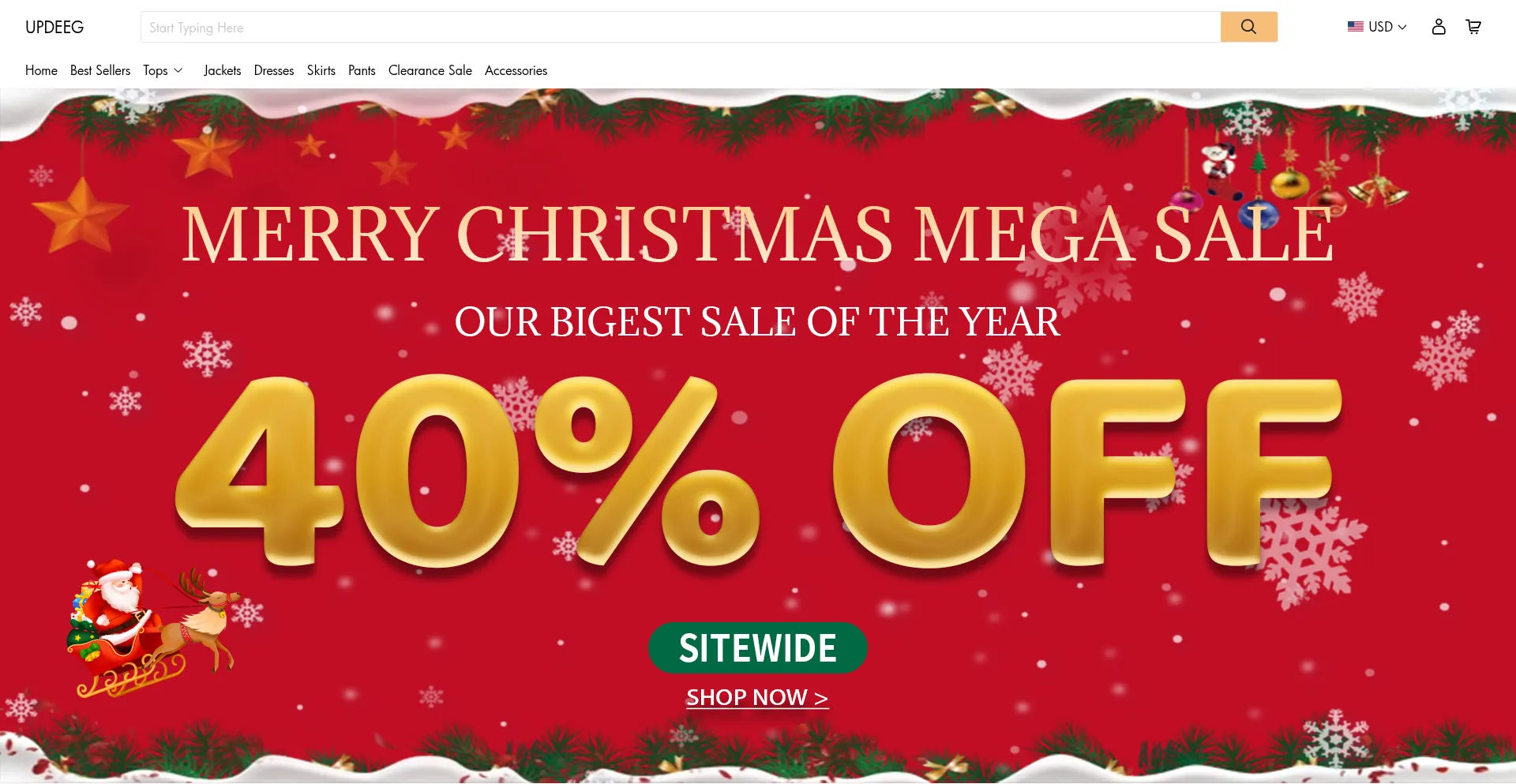 Updeeg.com exhibits characteristics consistent with scam-like e-commerce operations. The site appears to accept payments while customer reports suggest data collection issues.