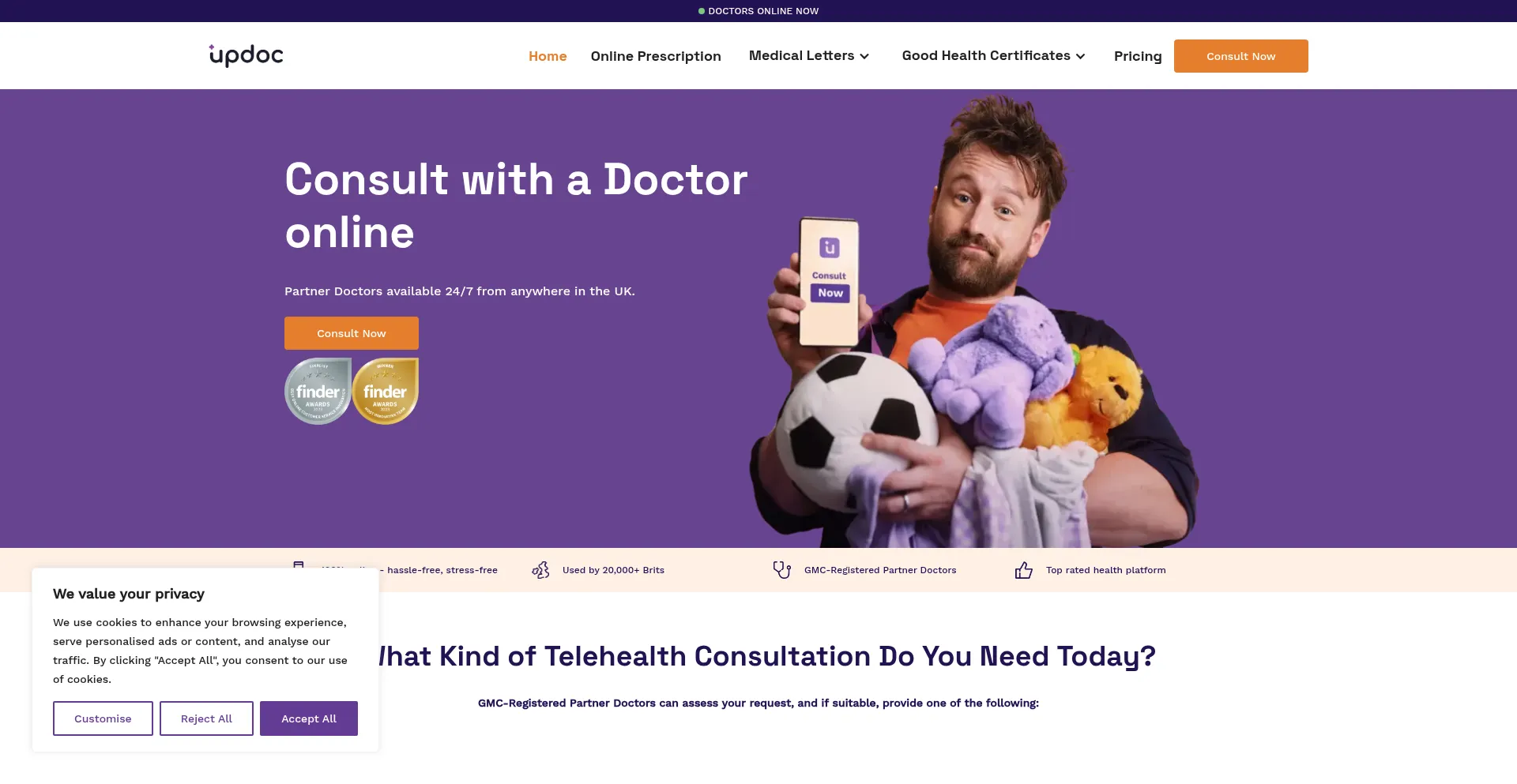 The website implements cookie consent mechanisms in compliance with privacy regulations such as GDPR or CCPA. This demonstrates that updoc.co.uk adheres to data protection standards and provides users with control over personal data collection practices.