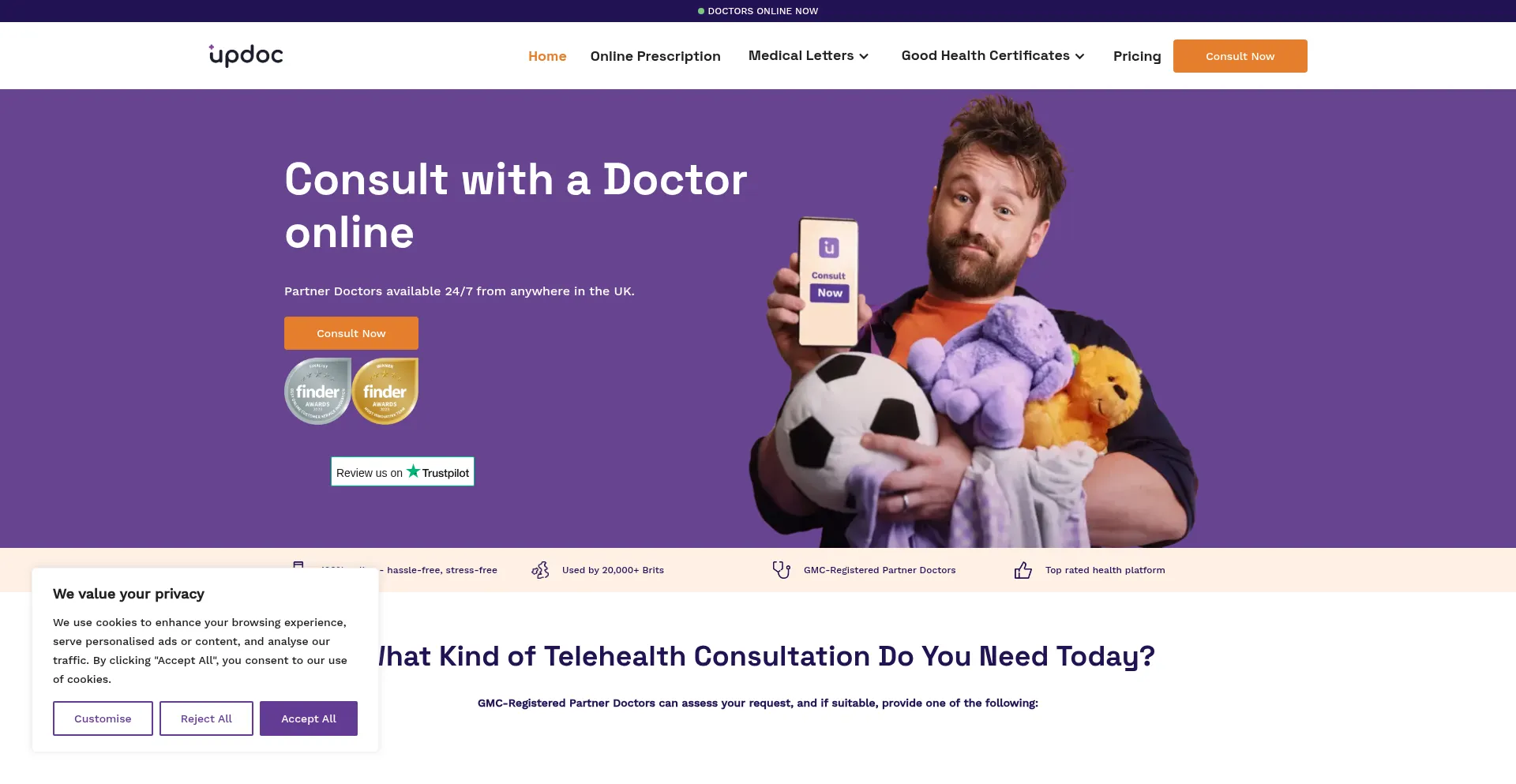 The website implements cookie consent mechanisms in compliance with privacy regulations such as GDPR or CCPA. This demonstrates that updoc.uk adheres to data protection standards and provides users with control over personal data collection practices.