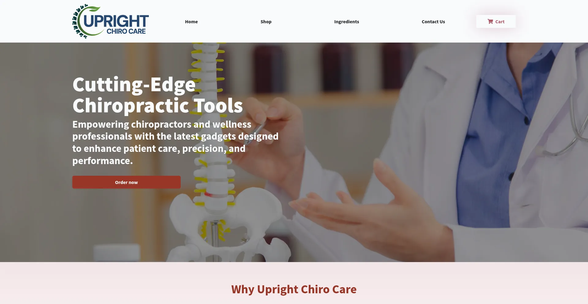Analysis indicates that uprightchirocare.com operates as an e-commerce platform facilitating online transactions for goods or services. The website implements shopping cart functionality, payment processing systems, and product catalog features typical of commercial retail operations.