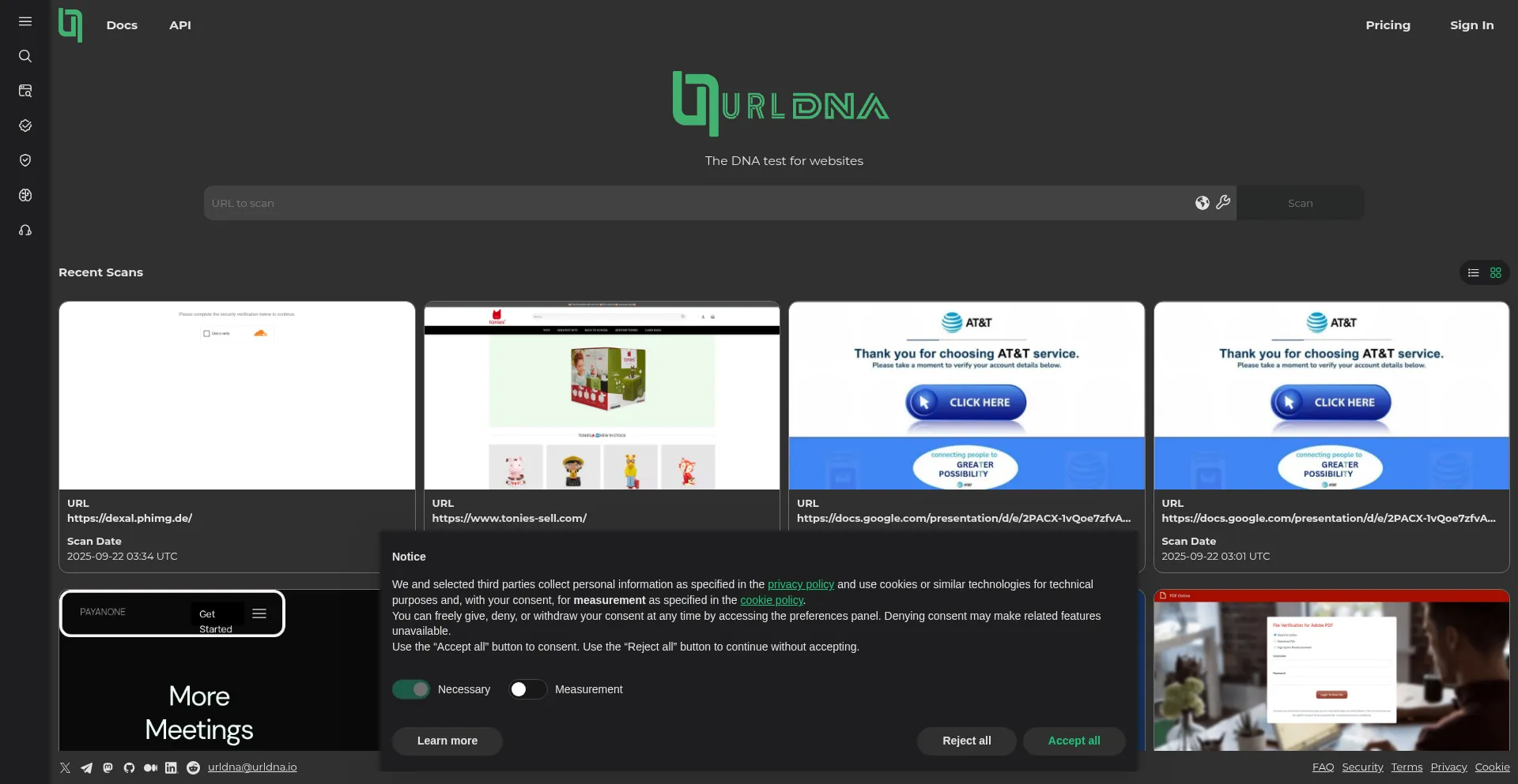 The website implements cookie consent mechanisms in compliance with privacy regulations such as GDPR or CCPA. This demonstrates that urldna.io adheres to data protection standards and provides users with control over personal data collection practices.