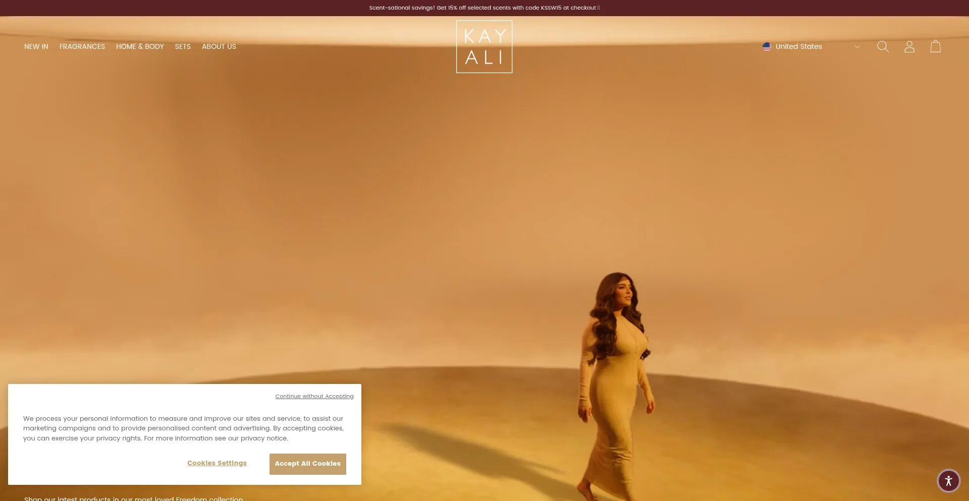 The website implements cookie consent mechanisms in compliance with privacy regulations such as GDPR or CCPA. This demonstrates that us.kayali.com adheres to data protection standards and provides users with control over personal data collection practices.