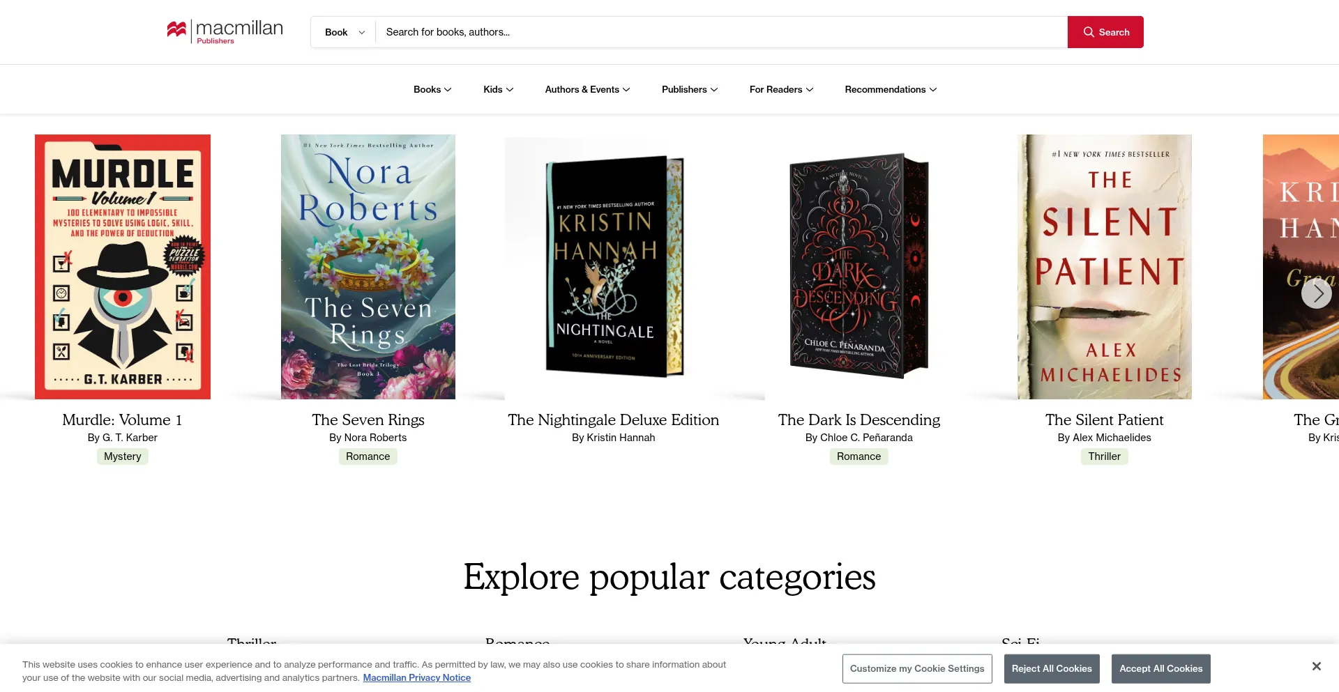 The website implements cookie consent mechanisms in compliance with privacy regulations such as GDPR or CCPA. This demonstrates that us.macmillan.com adheres to data protection standards and provides users with control over personal data collection practices.